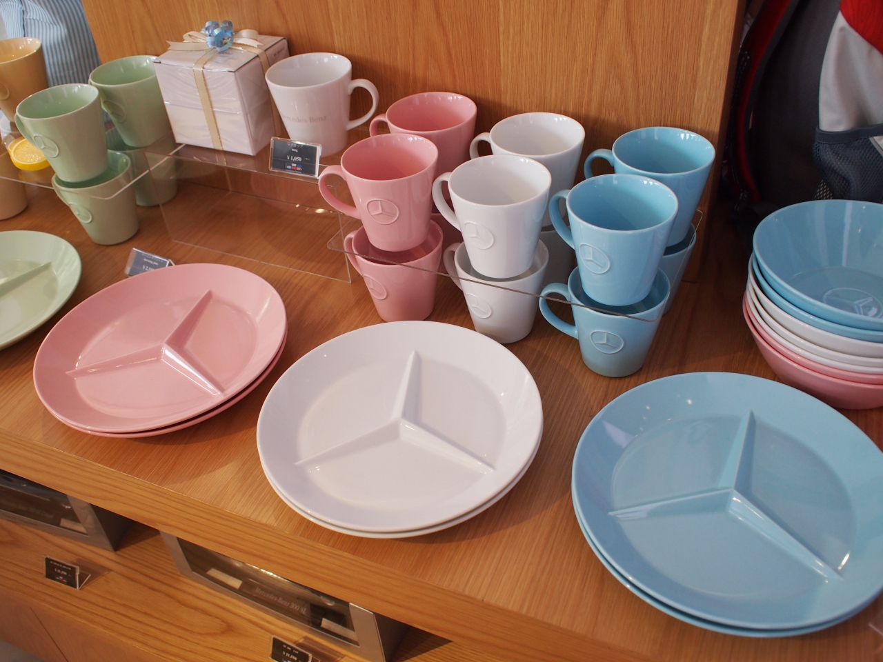 オリジナルのドーナツで、アイシングで模様を描いた、メルセデス・ベンツ・ドーナツというのもあります。 話の種に注文するのも面白いですが、味的には、外国のドーナツっぽく、ジャリジャリしててめちゃくちゃ甘かったです。 ショールームのほかにも、メルセデス・ベンツのオリジナルグッズ売り場もあり、なかなかかわいいものが売っていました。 閉じる投稿日:2012/08/07