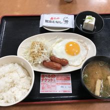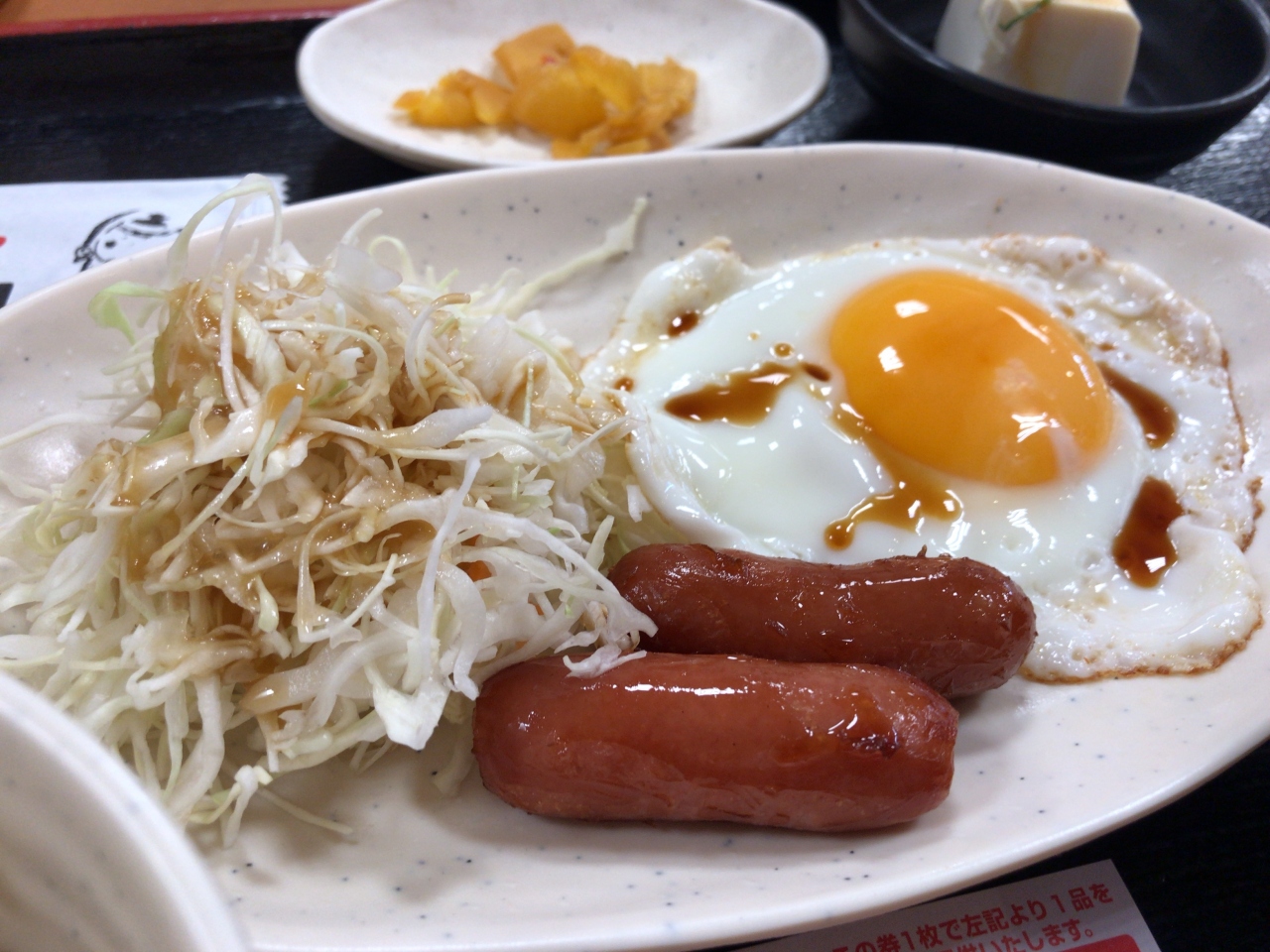 大阪の街食堂宮本むなしで目玉焼きとウインナー定食でモーニング
