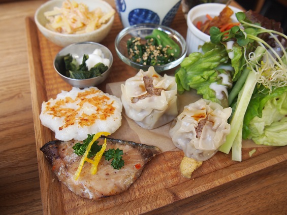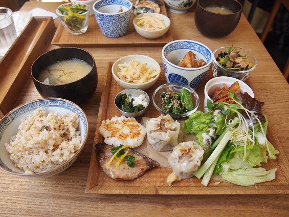 私たちは日替わりごはんプレートを注文。ごはんは玄米か十穀米を選べますし、無料で大盛りにもしてくれます。客層は2名ほど男性が混じってましたが、ほとんど女性グループ。店内の雰囲気も、お料理も、いかにも女性の好きそうな感じです。