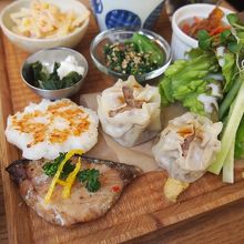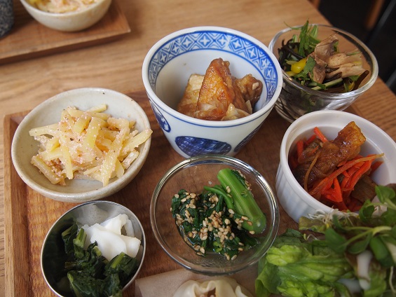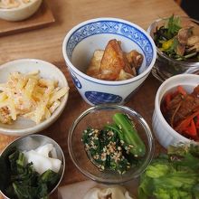 小鉢が多数のってるプレート。 ほとんどがお野菜中心で、ヘルシーです。