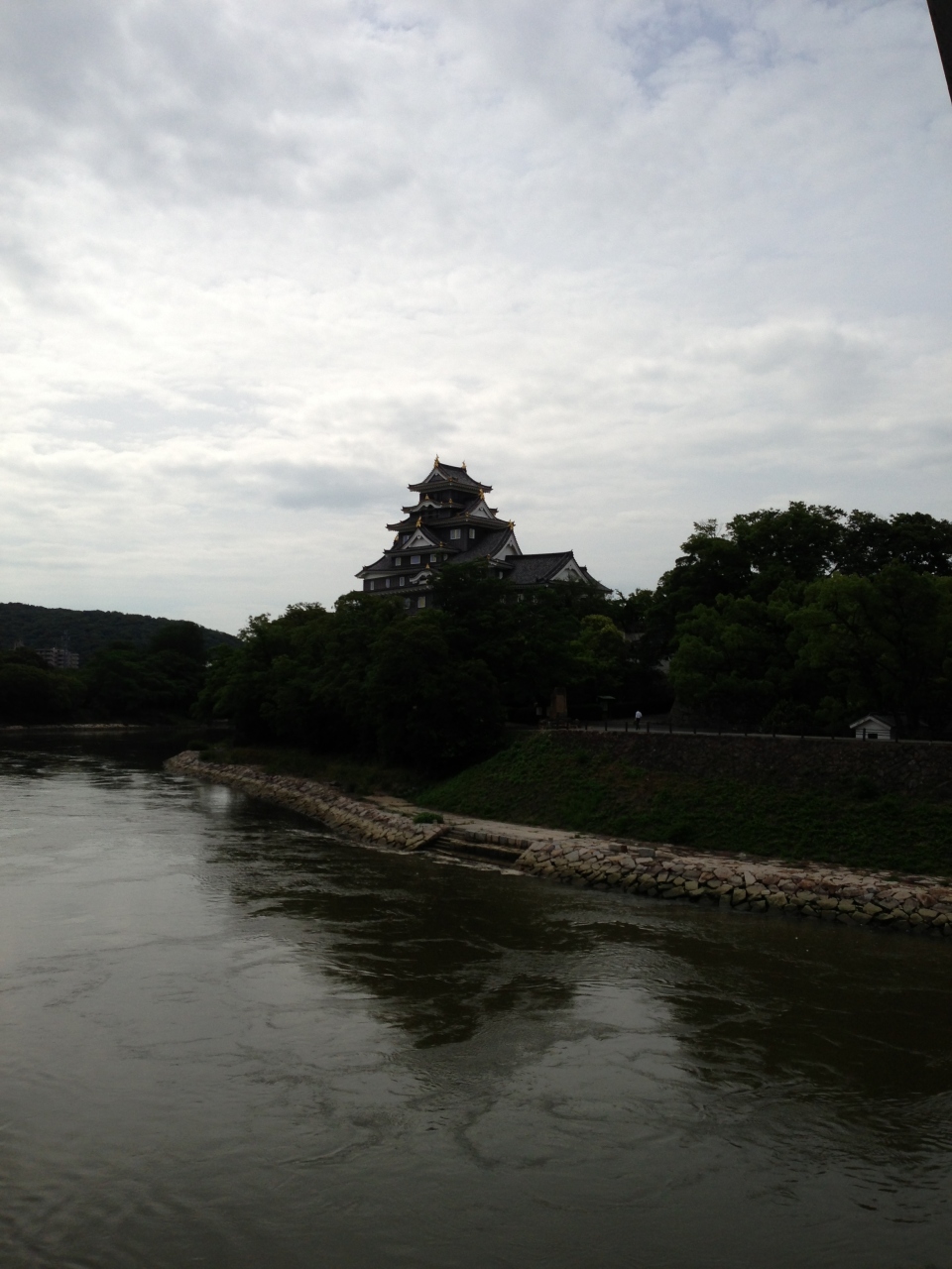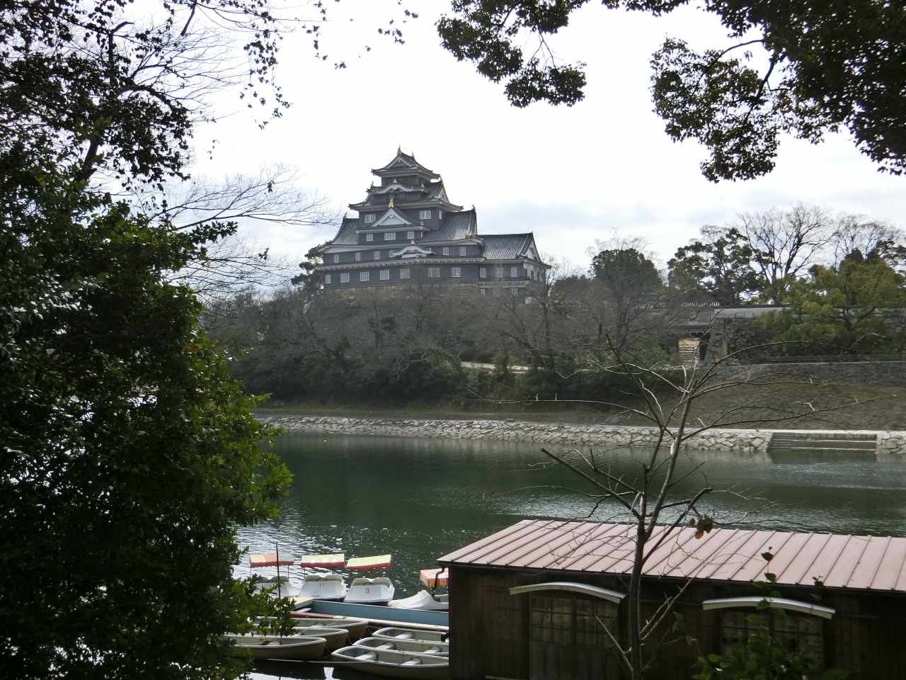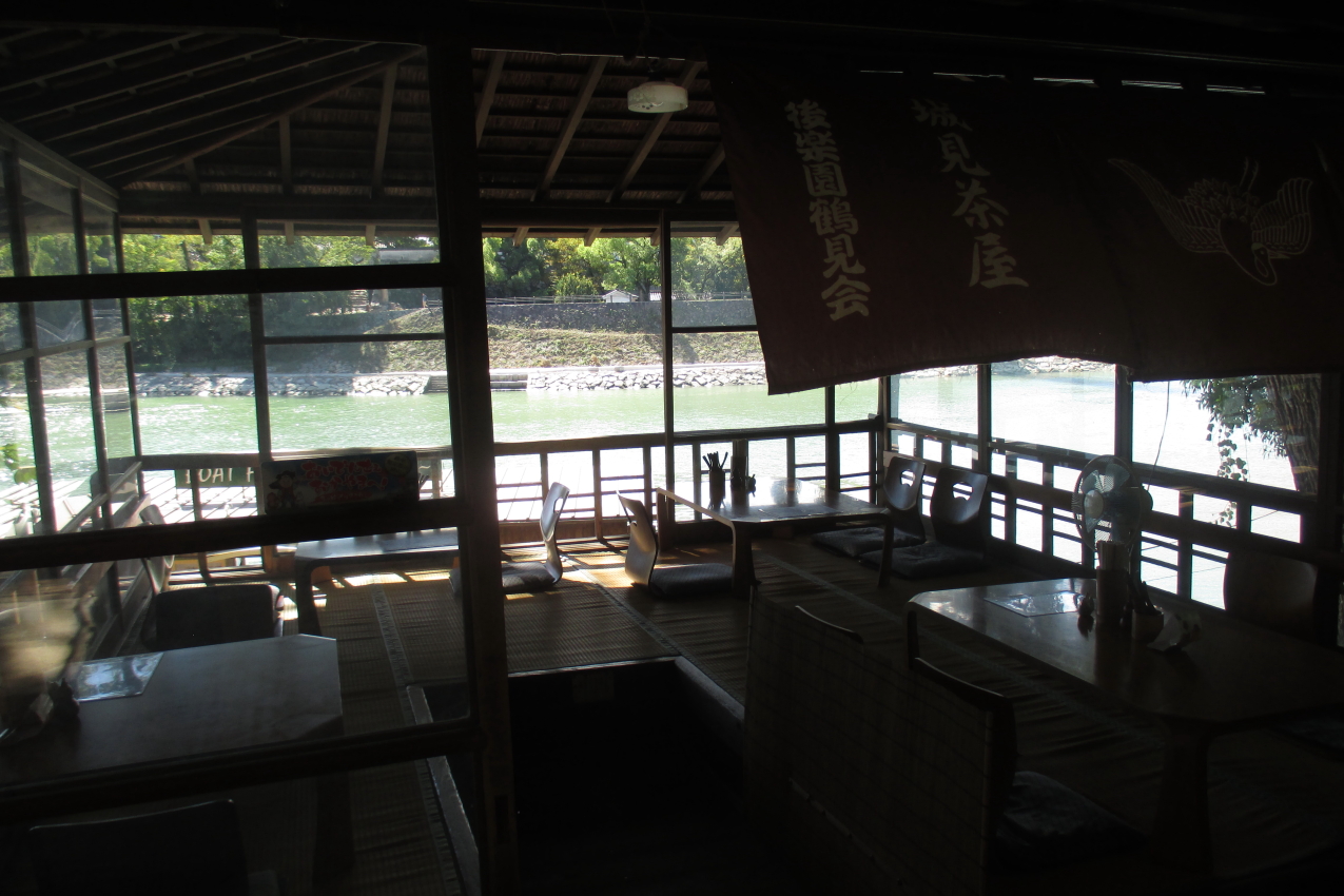 岡山城から旭川の橋を渡って、右側にあります。 後楽園の南入り口の手前の建物です。