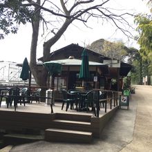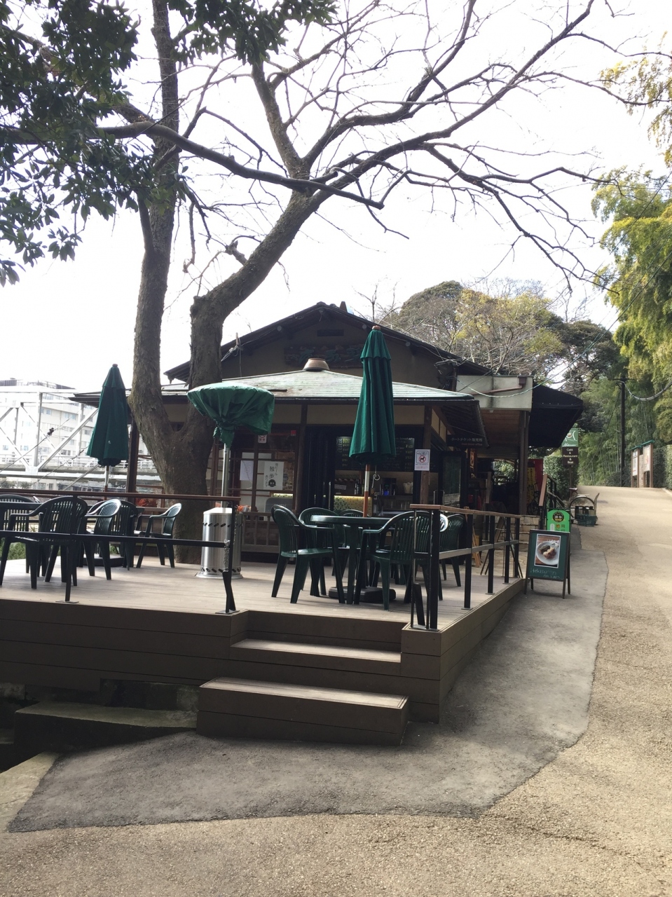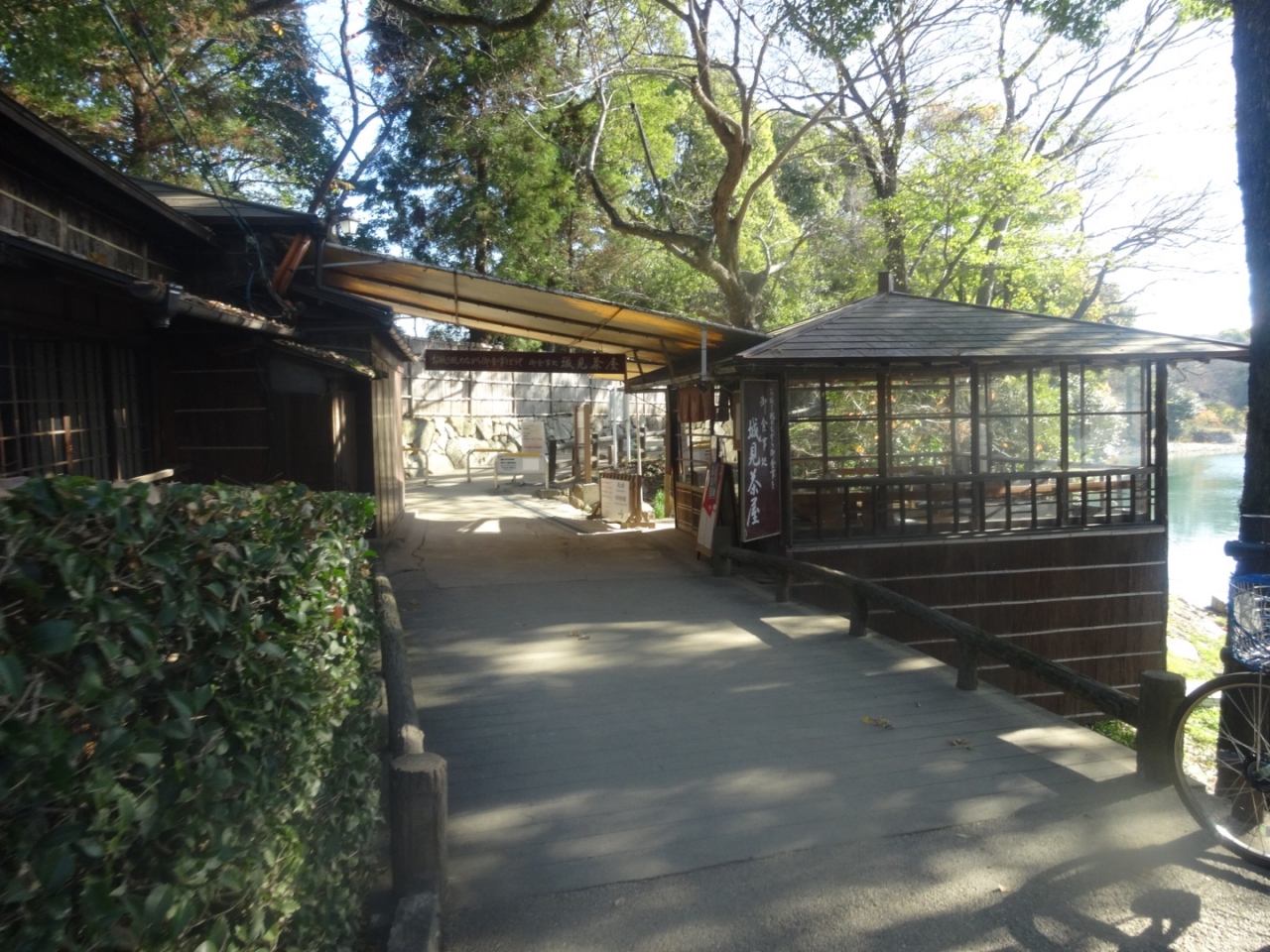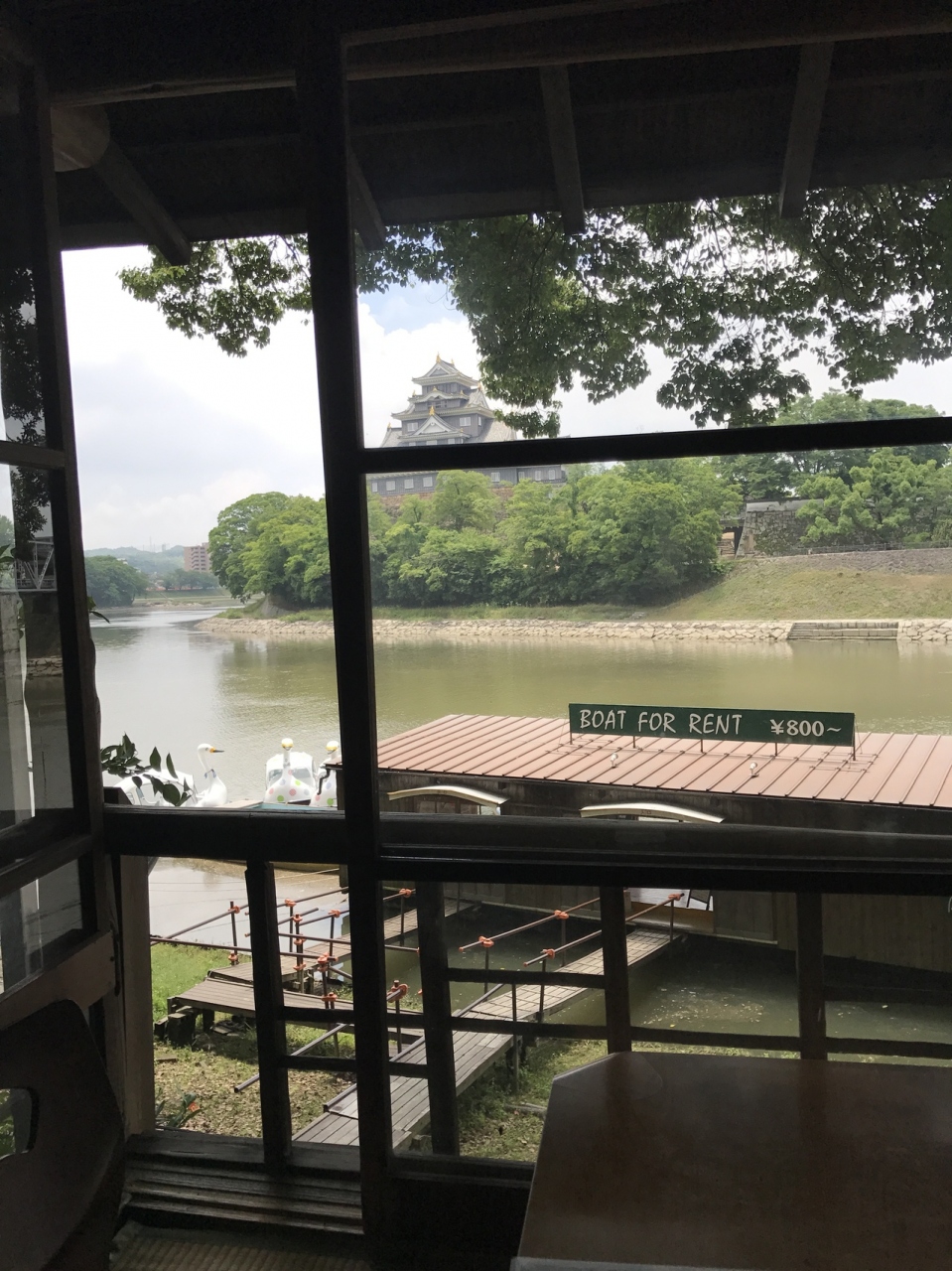 岡山城から旭川の橋を渡って、右側にあります。 後楽園の南入り口の手前の建物です。