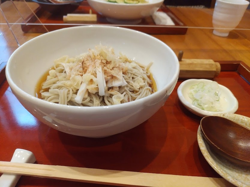 細麺の蕎麦で、すだちの酸味がよく効いていてさっぱりした味でした