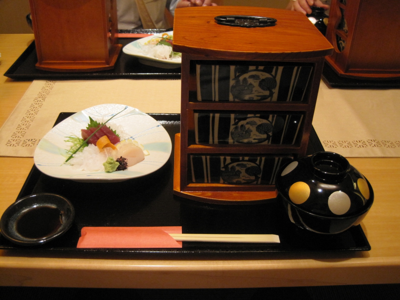 ... 続きを読む弁当の内容は三段弁当、お造り三種、吸物、甘味。
