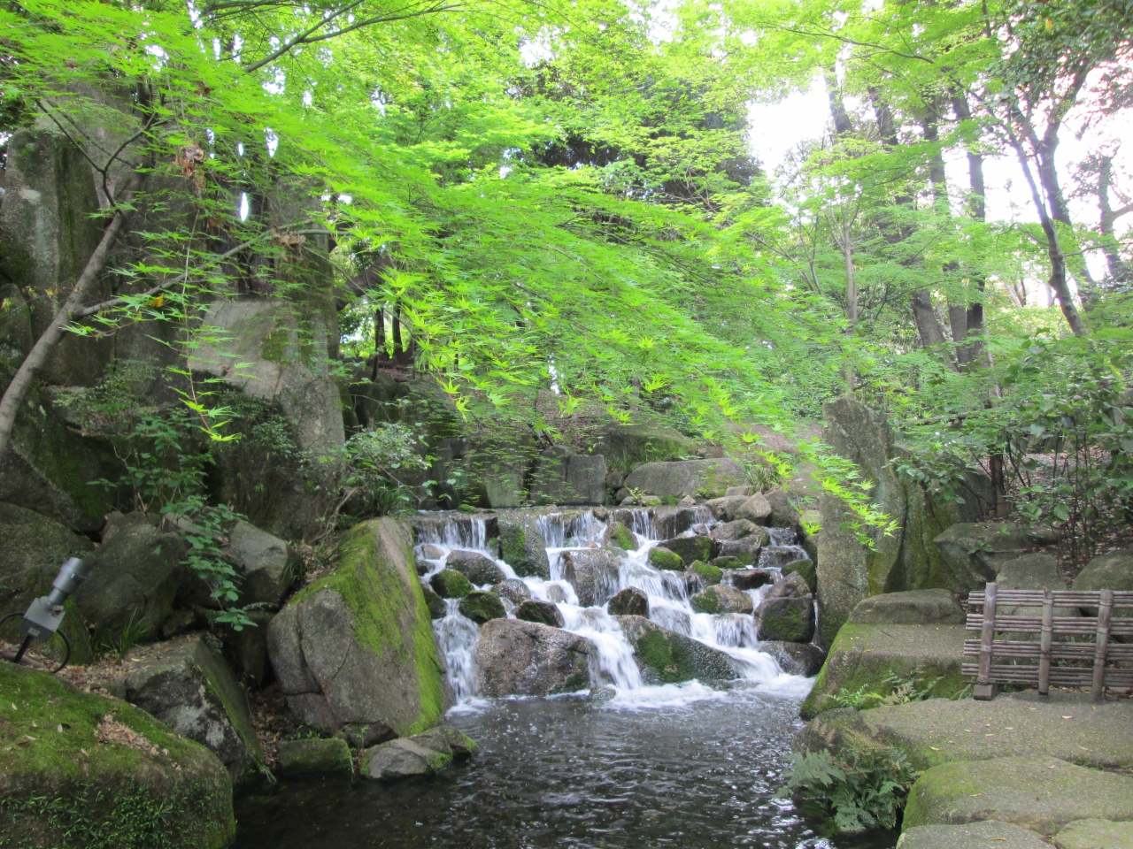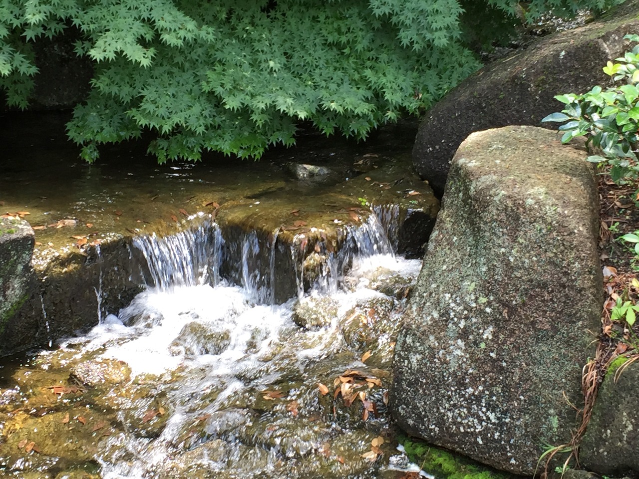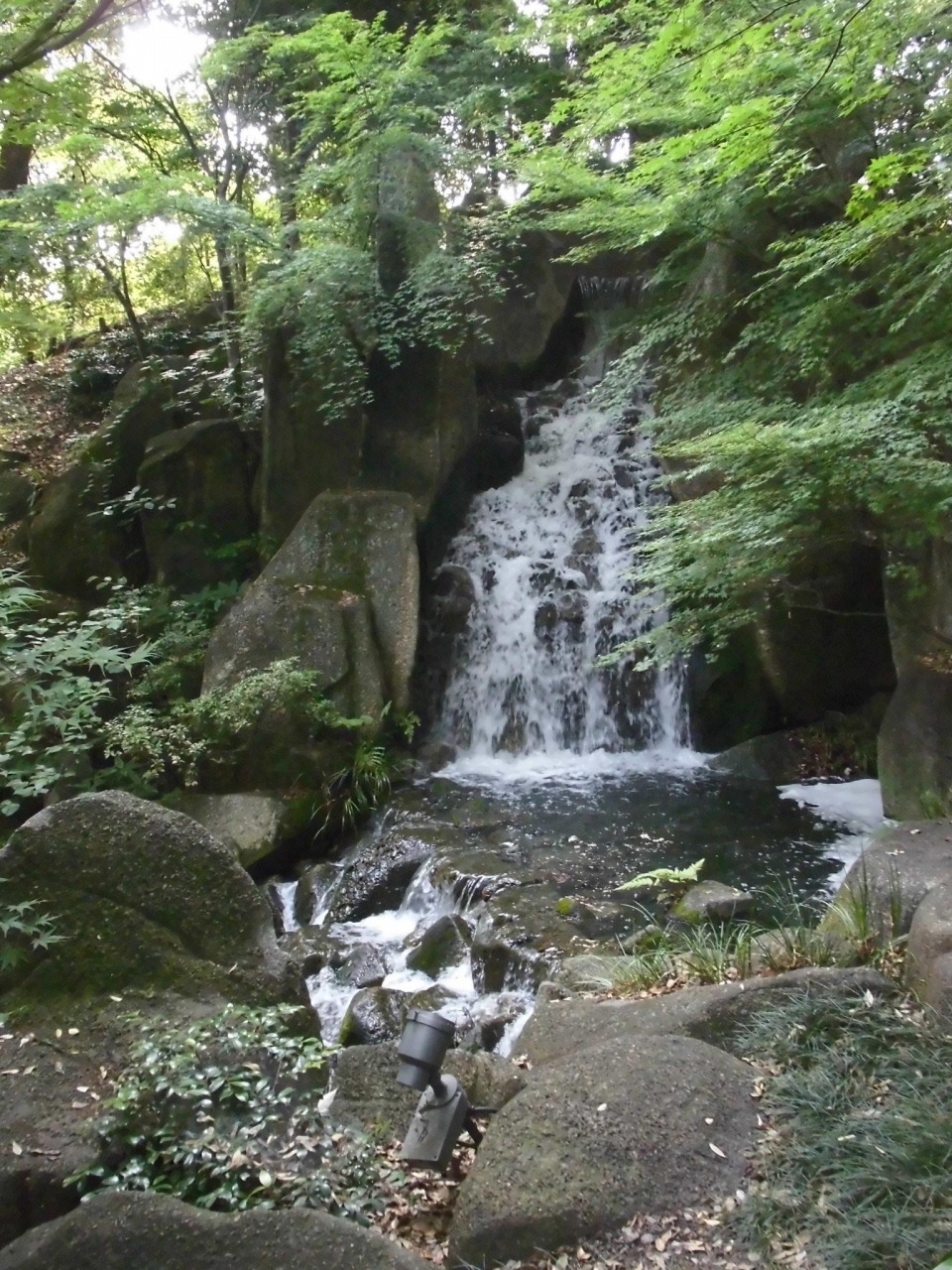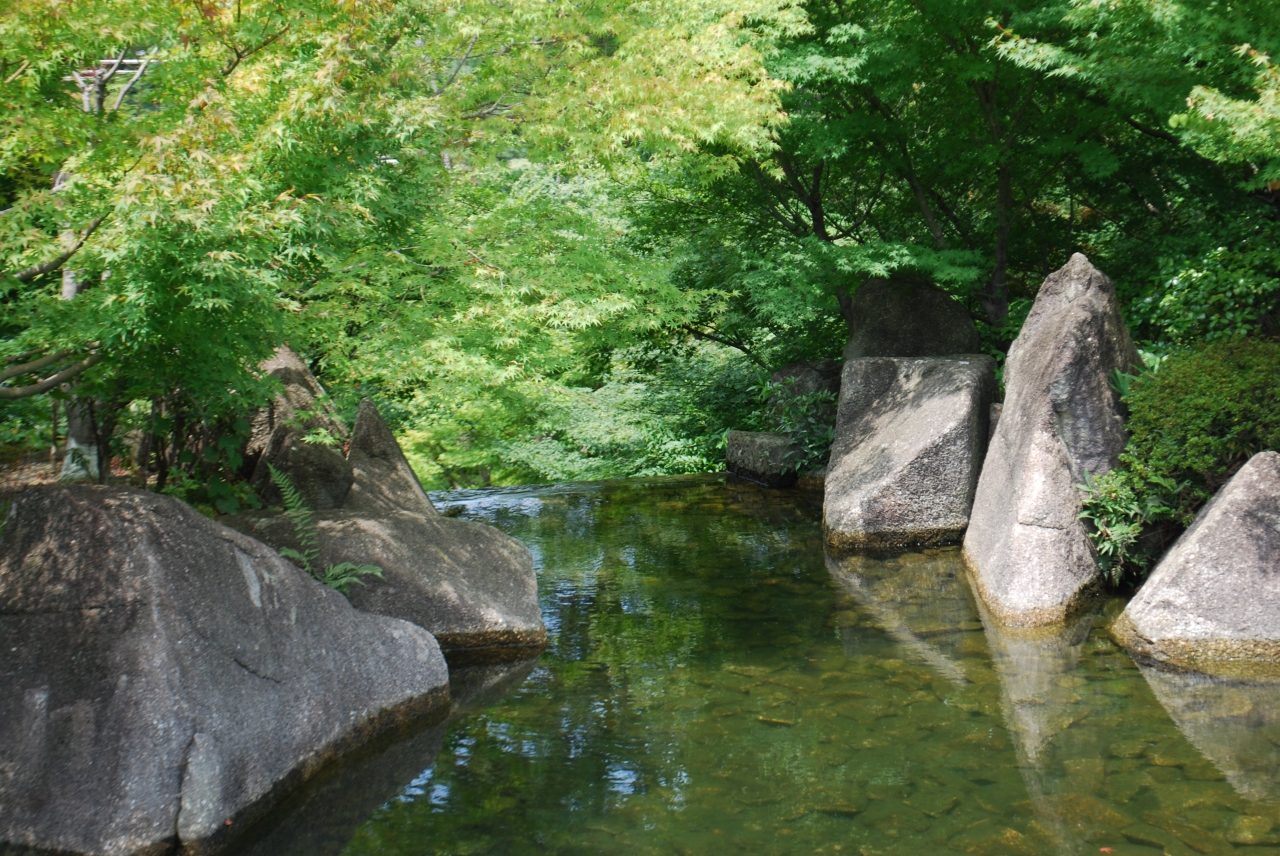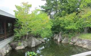 広大な敷地に池や滝があり、心がなごみます。