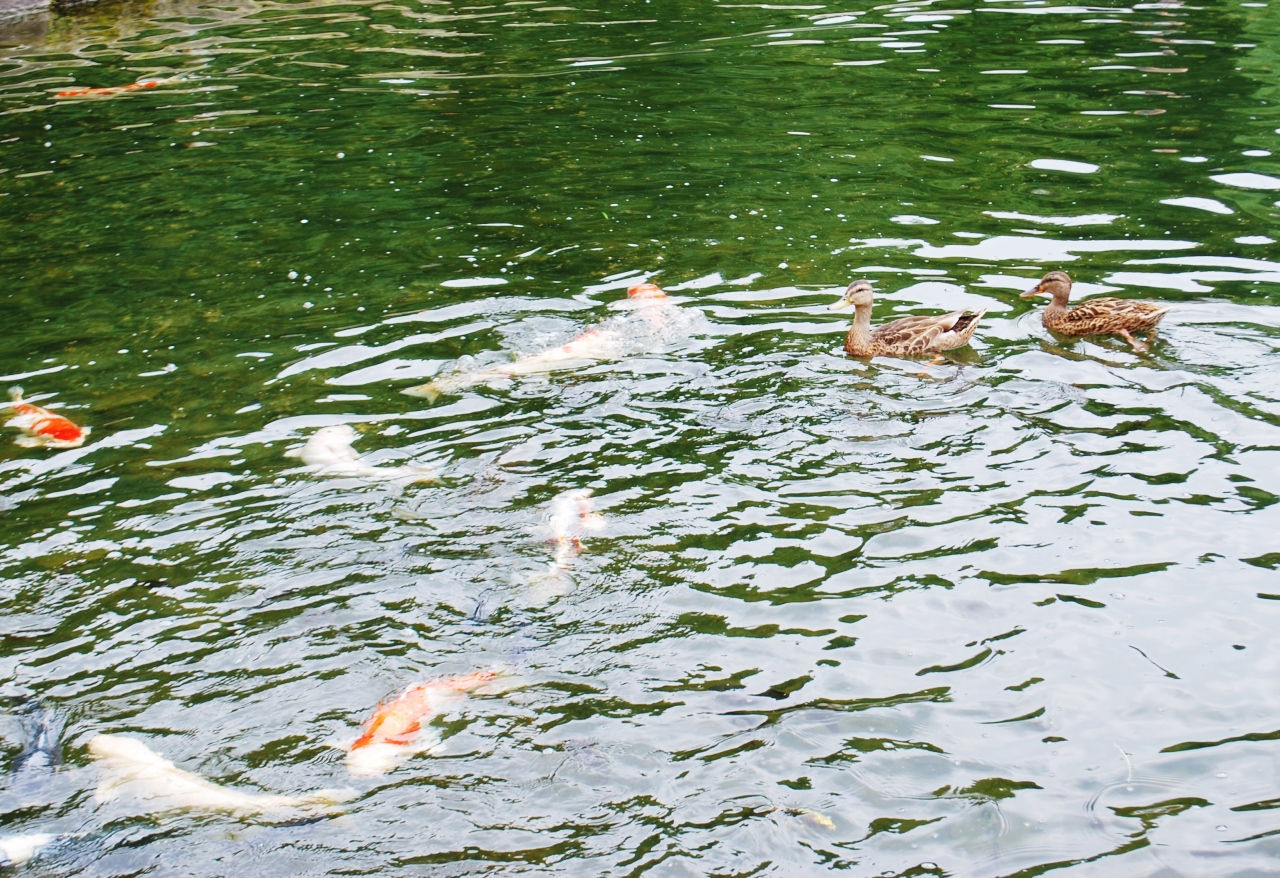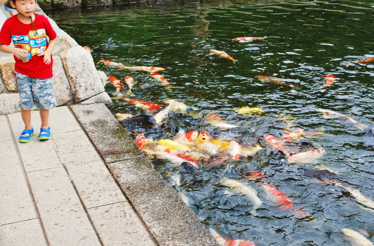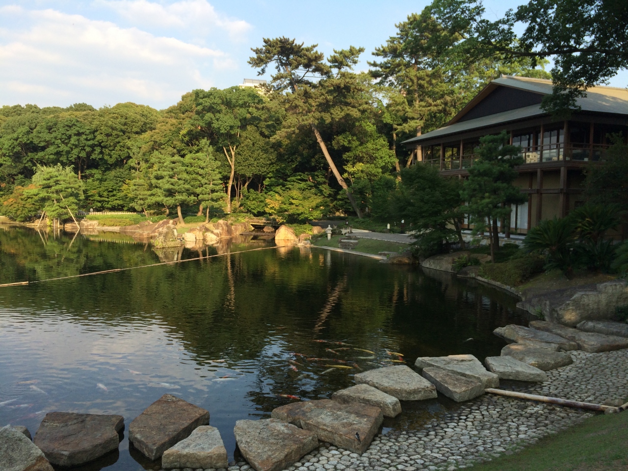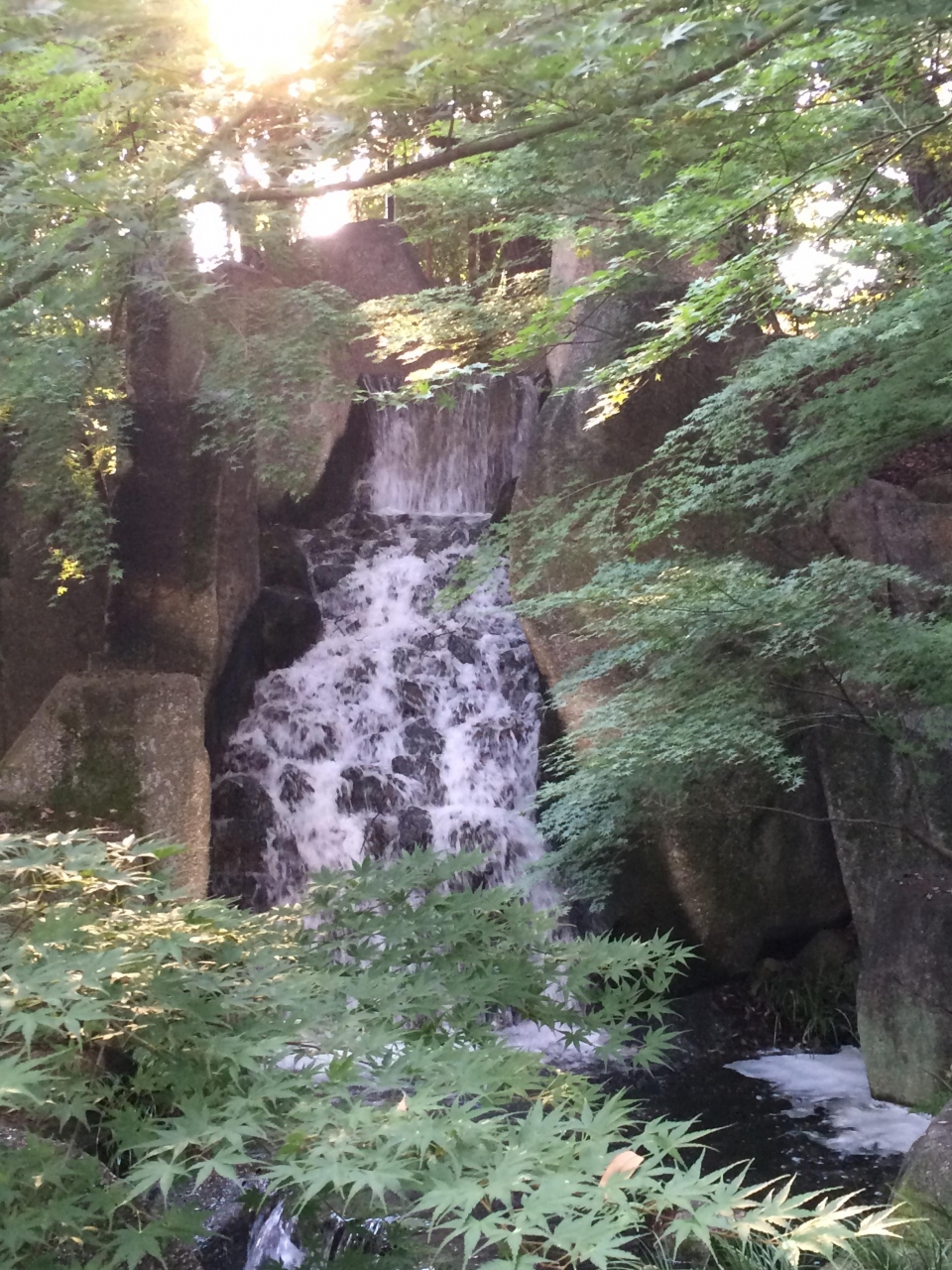 広大な敷地に池や滝があり、心がなごみます。
