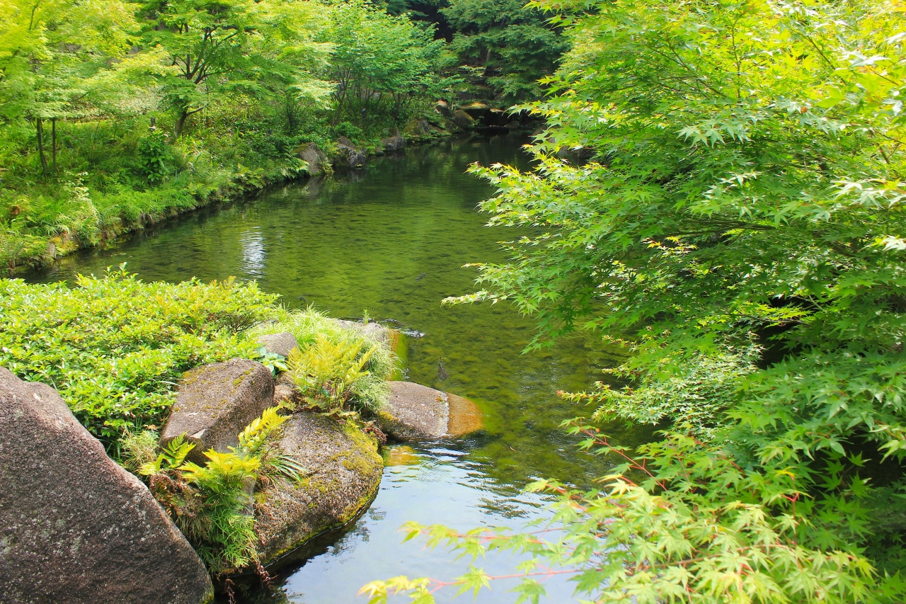 庭園内は、大きな池や渓流もあり、名古屋市内にあって四季折々の自然が楽しめる場所にもなっています。