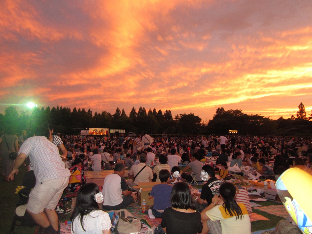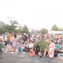 毎年たくさんの人が訪れますが、広い公園なのでそんなに早目に来て場所を確保しなくても大丈夫だと思います。ただ、駐車場がないので、駅近辺の大型スーパーの立体駐車場に停めた時は駐車場から出るまでに1時間くらいかかった事がありました。