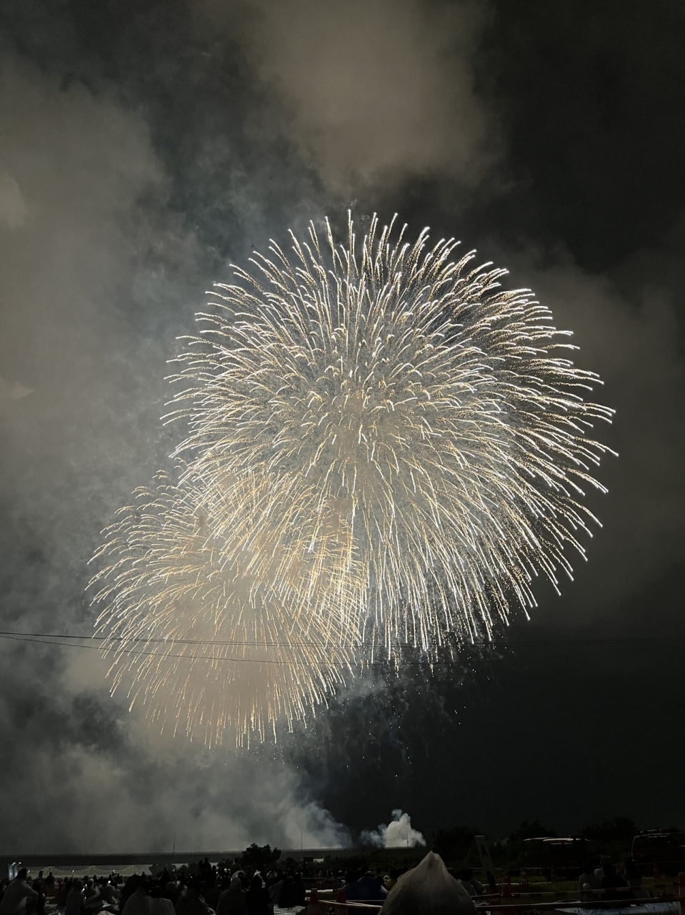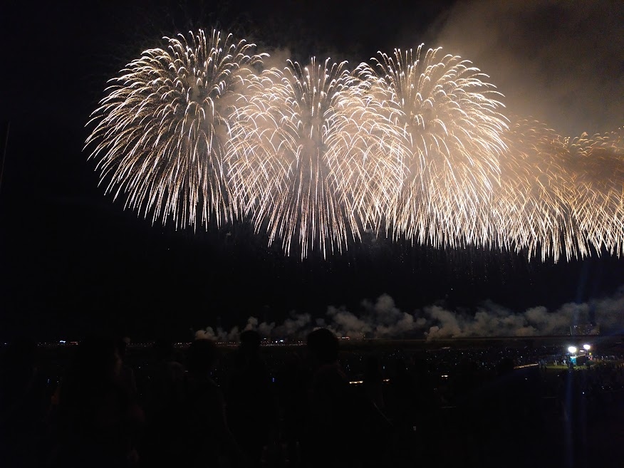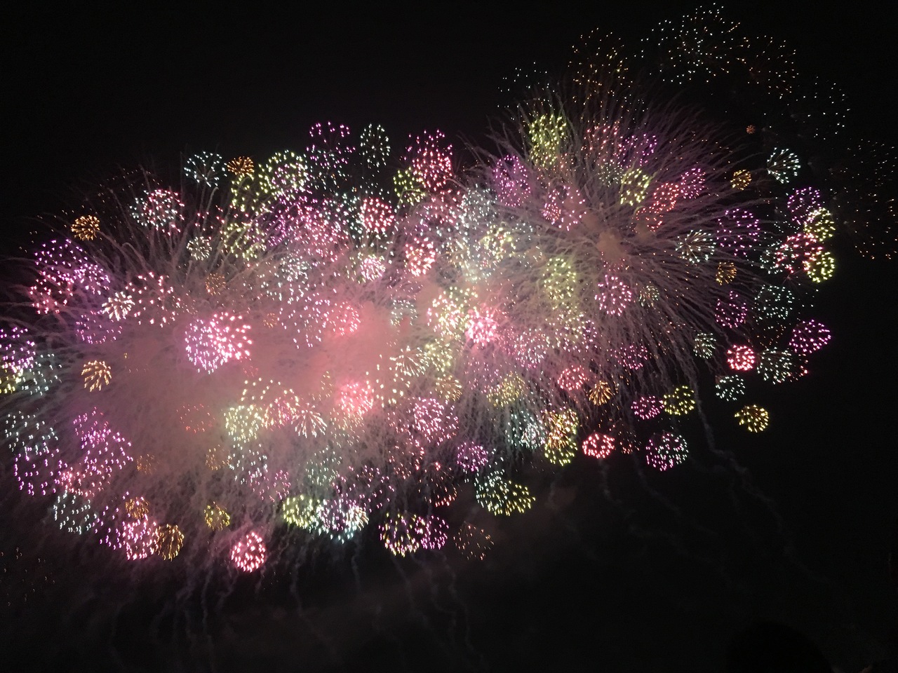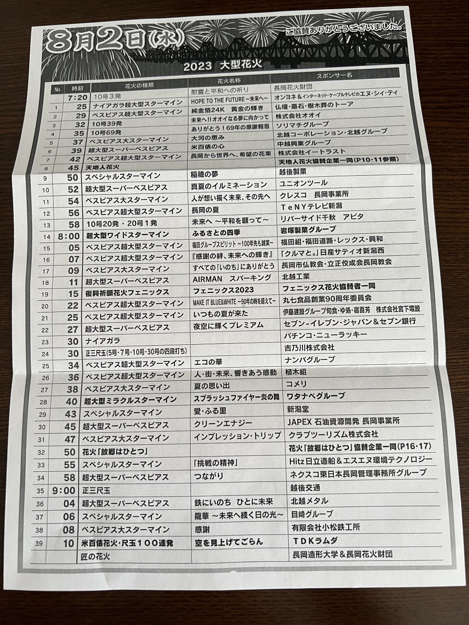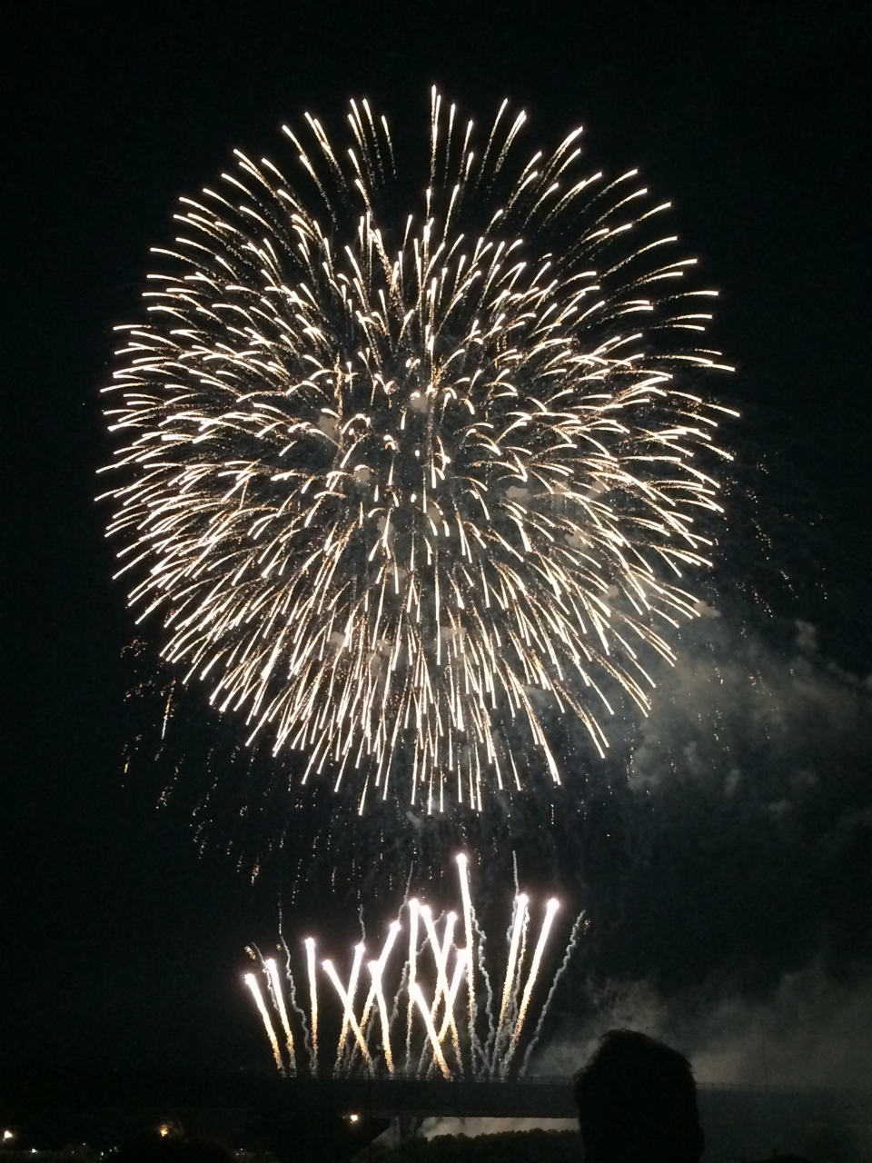 日本三大花火の一つ、長岡祭りの大花火大会に初めて出かけてきました。チケットもなく様子も分からずの首都圏からマイカーの強行... 続きを読む軍でしたが、規模が小さい花火だとみんなフィナーレみたいな大型花火の打ち上げに、やっぱすごいと思いました。ただし、クライマックスのスーパーフェニックスは、見る位置が悪くイマイチでした。駐車場は国営越後丘陵公園を利用。車はたくさん停められる分、会場までシャトルバス20分以上であまり便利はよくありません。見たのは上流側の長生橋のさらに上流。河川敷にレジャーシートを敷いてゆっくり見ました。橋の下流側は有料会場が中心で一部無料もありましたが、そちらには満杯で入れず。横一面に広がる「スーパーフェニックス」はタテ方向から見ることしかできませんでした。人口20数万の都市にはこれだけの観光客をさばくのは難しいかも。 閉じる