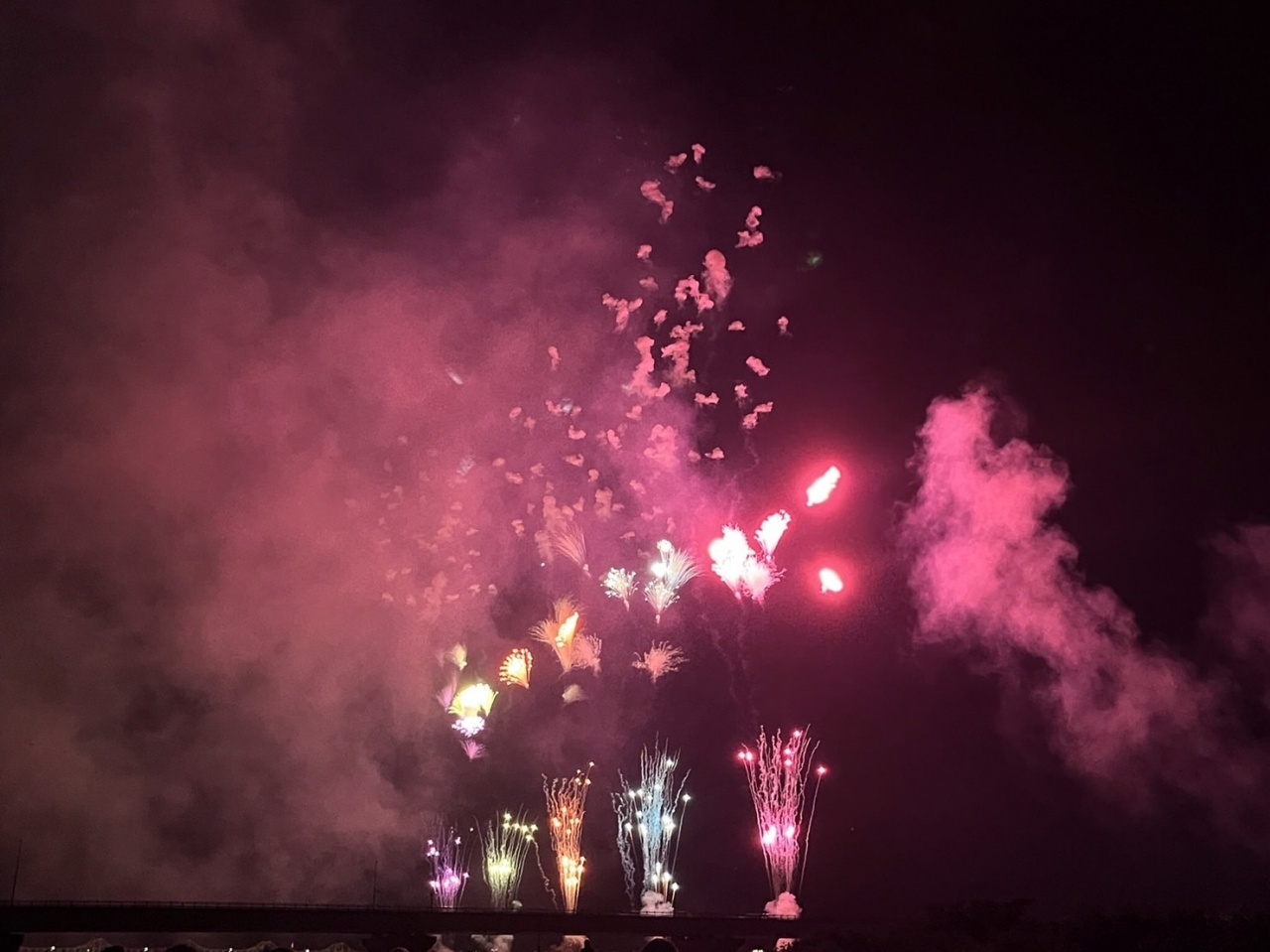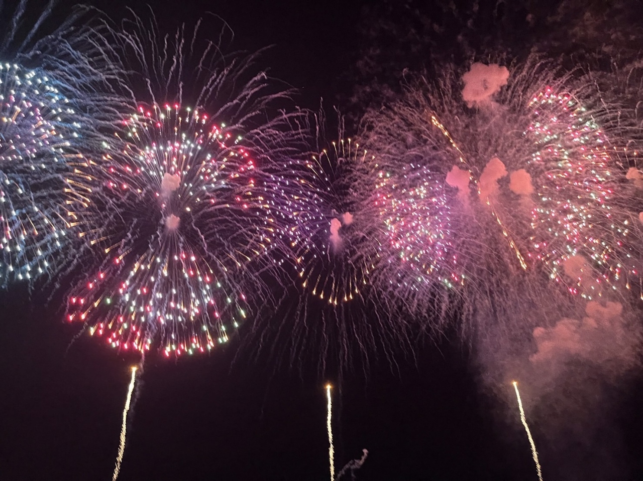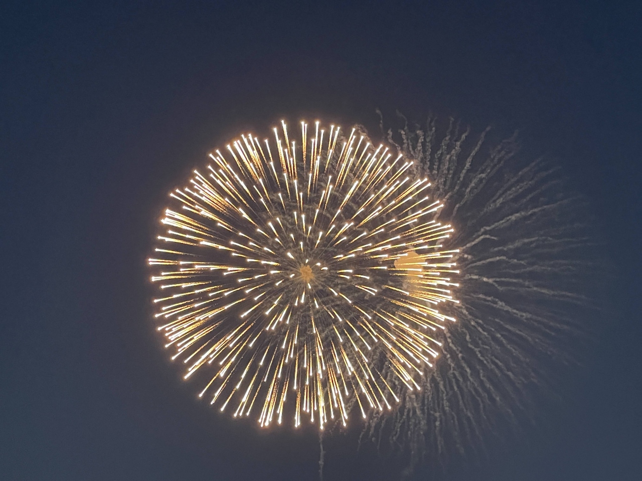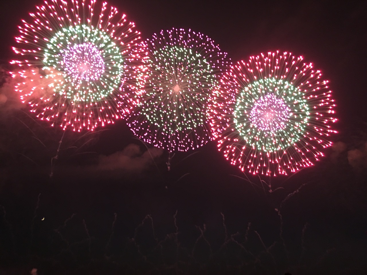 日本三大花火の一つ、長岡祭りの大花火大会に初めて出かけてきました。チケットもなく様子も分からずの首都圏からマイカーの強行... 続きを読む軍でしたが、規模が小さい花火だとみんなフィナーレみたいな大型花火の打ち上げに、やっぱすごいと思いました。ただし、クライマックスのスーパーフェニックスは、見る位置が悪くイマイチでした。駐車場は国営越後丘陵公園を利用。車はたくさん停められる分、会場までシャトルバス20分以上であまり便利はよくありません。見たのは上流側の長生橋のさらに上流。河川敷にレジャーシートを敷いてゆっくり見ました。橋の下流側は有料会場が中心で一部無料もありましたが、そちらには満杯で入れず。横一面に広がる「スーパーフェニックス」はタテ方向から見ることしかできませんでした。人口20数万の都市にはこれだけの観光客をさばくのは難しいかも。 閉じる