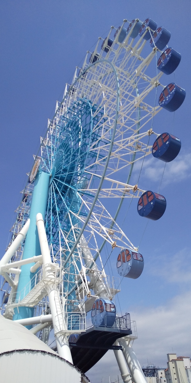 観覧車と建物とシャトルバス