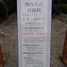 - 【料金】 大人: 500円 入山料 備考: 団体30名以上400円