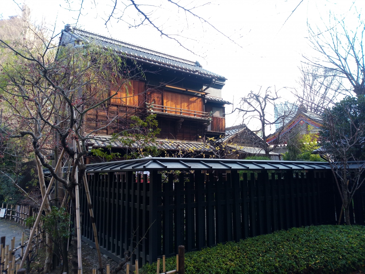 神田鎌倉河岸の江戸時代から続く木材商の店舗兼家屋だった建物を移築されたもので、カフェが併設されているような話を聞いたこともありましたが、門が閉まっていたので、外観のみ見学してきました。