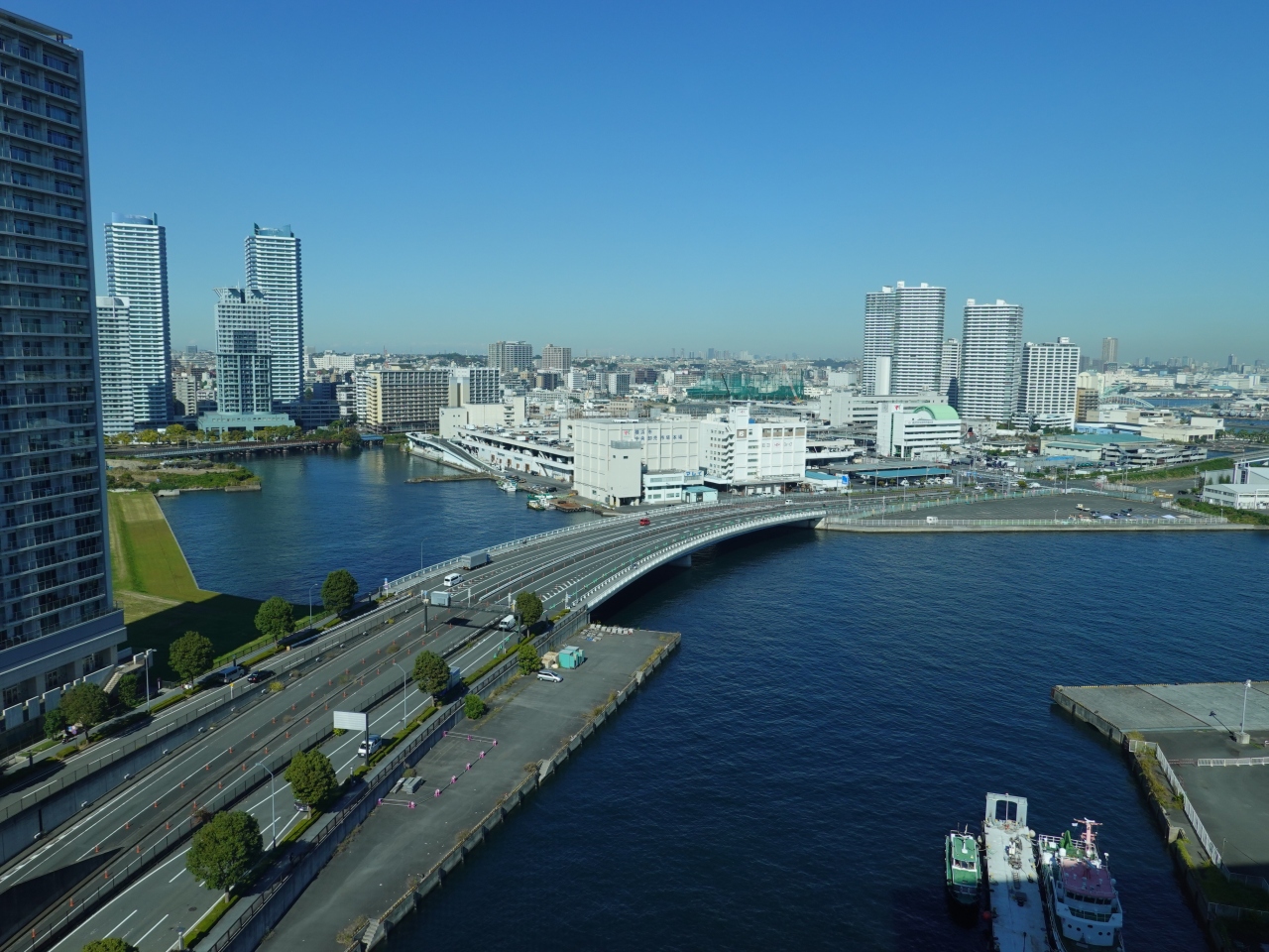 帷子川にかかるはまみらいウォークを通るのが、定番