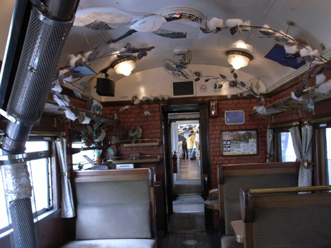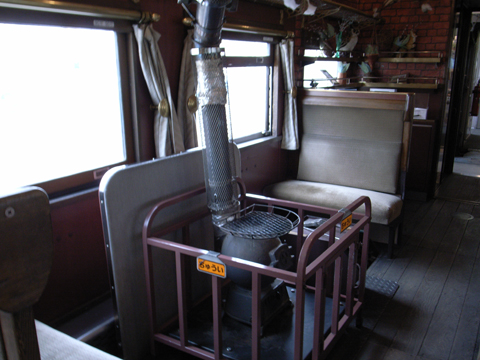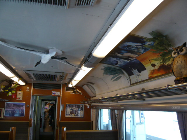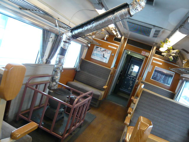 さて、肝心の列車ですが、綺麗なボックス席。そして、天井には、ふくろうやタンチョウ等、釧路湿原にまつわる動物の人形が置かれてました。また、名物となってるストーブもあって趣きがありました。 閉じる投稿日:2012/03/22
