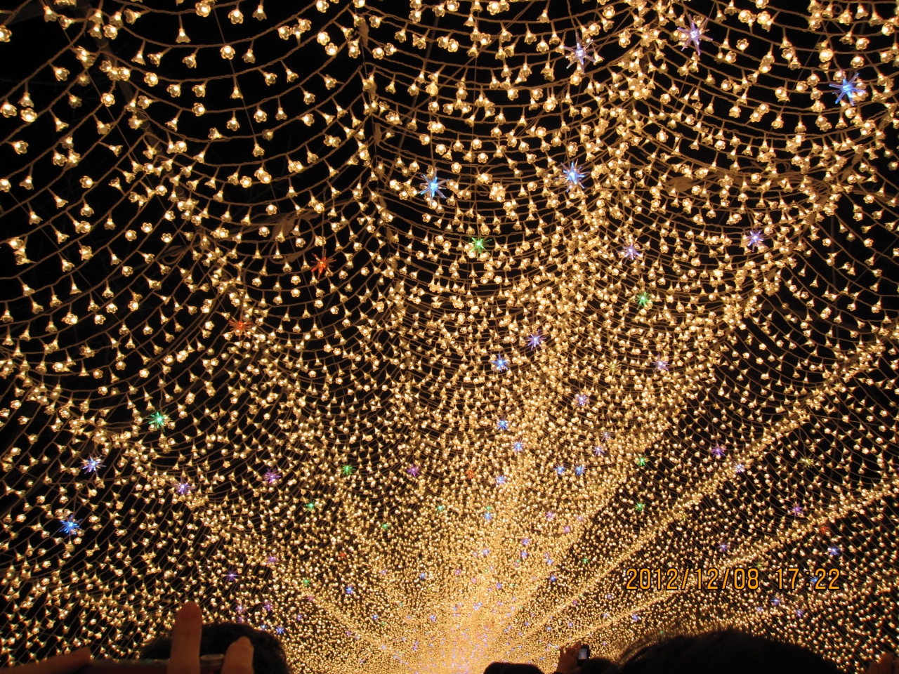 一面に光る花のようなもので覆われたトンネルでとても神秘的でした。