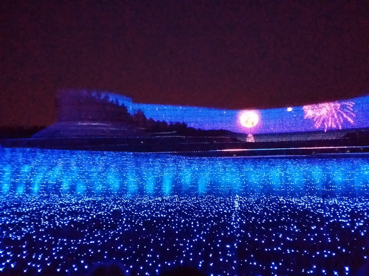 やっと時間になって水上イルミネーション、光のトンネルに向かいました。