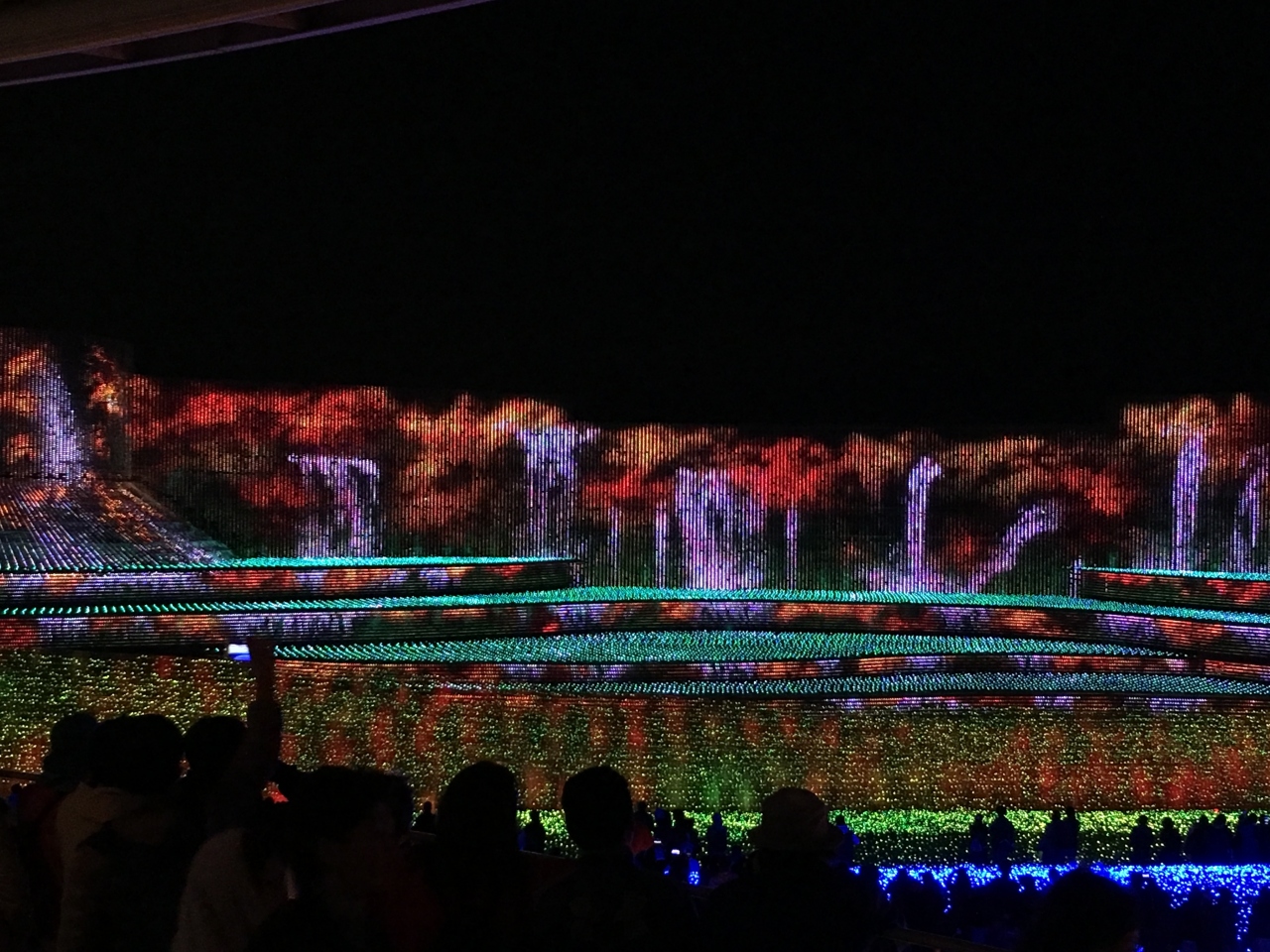 帰り方向は、100mの光のトンネルで「秋」をイメージした演出でしたが、これもスゴイなという感じでした。