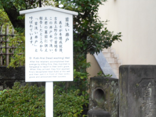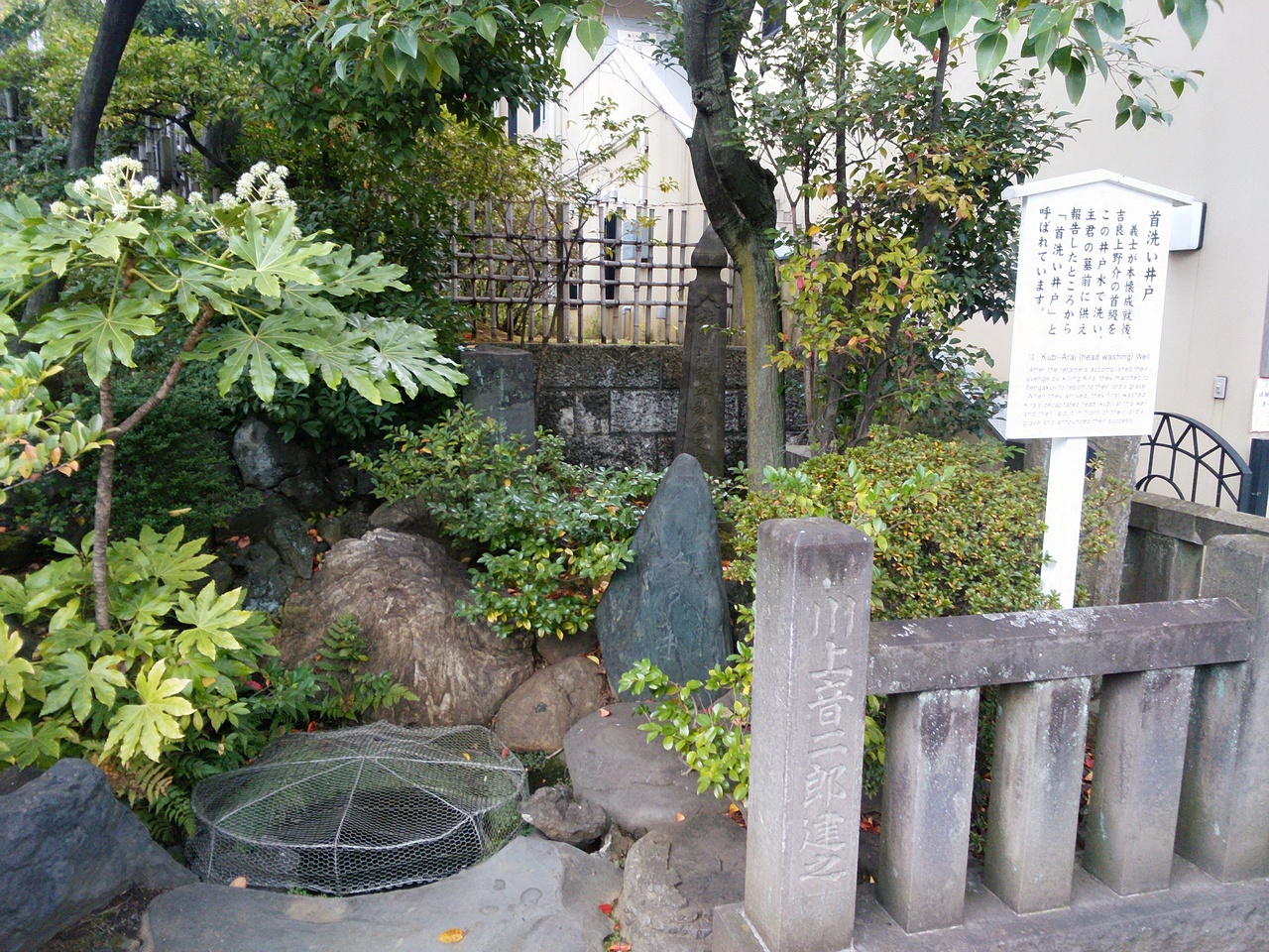 赤穂義士が討ち入った吉良邸の一部が、現在の両国にある本所松坂町公園内に残っています。公園には首洗い井戸や、赤穂義士についての説明板などがあります。討ち入った後、吉良の首を主君の墓に供えるため、泉岳寺へ向かったため、泉岳寺に向かう道中には、忠臣蔵にまつわる石碑などが複数あります。