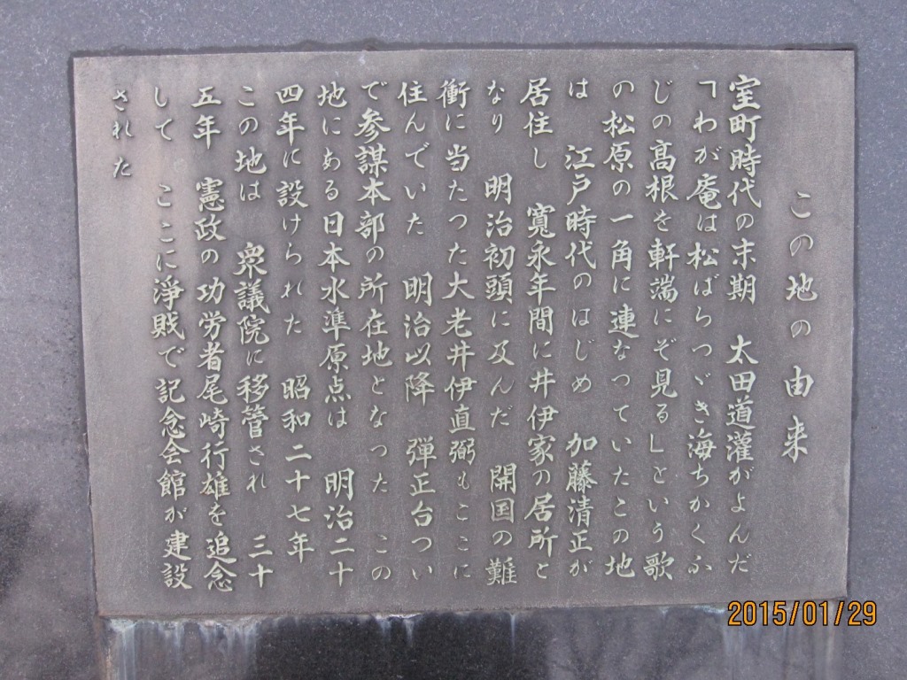 また。、近くの時計塔の脇には、尾崎行雄略歴の石碑が建ててあります。