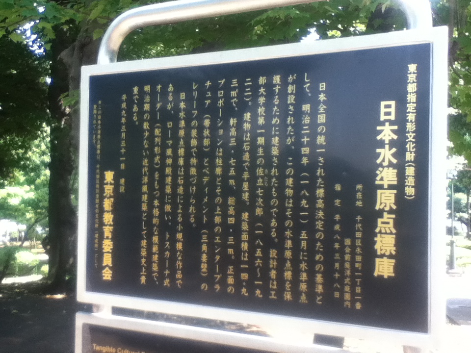 国会議事堂前にある国会前庭庭園には日本水準原点が置かれ日本の標高を測定する基準の場所で建物は国の重要文化財に指定されている... 続きを読む歴史ある建物です。現在の高さの基準は2011年3月11日の東日本大震災によって24mm沈下して基準の高さは24.3900mに改定されてます。 閉じる