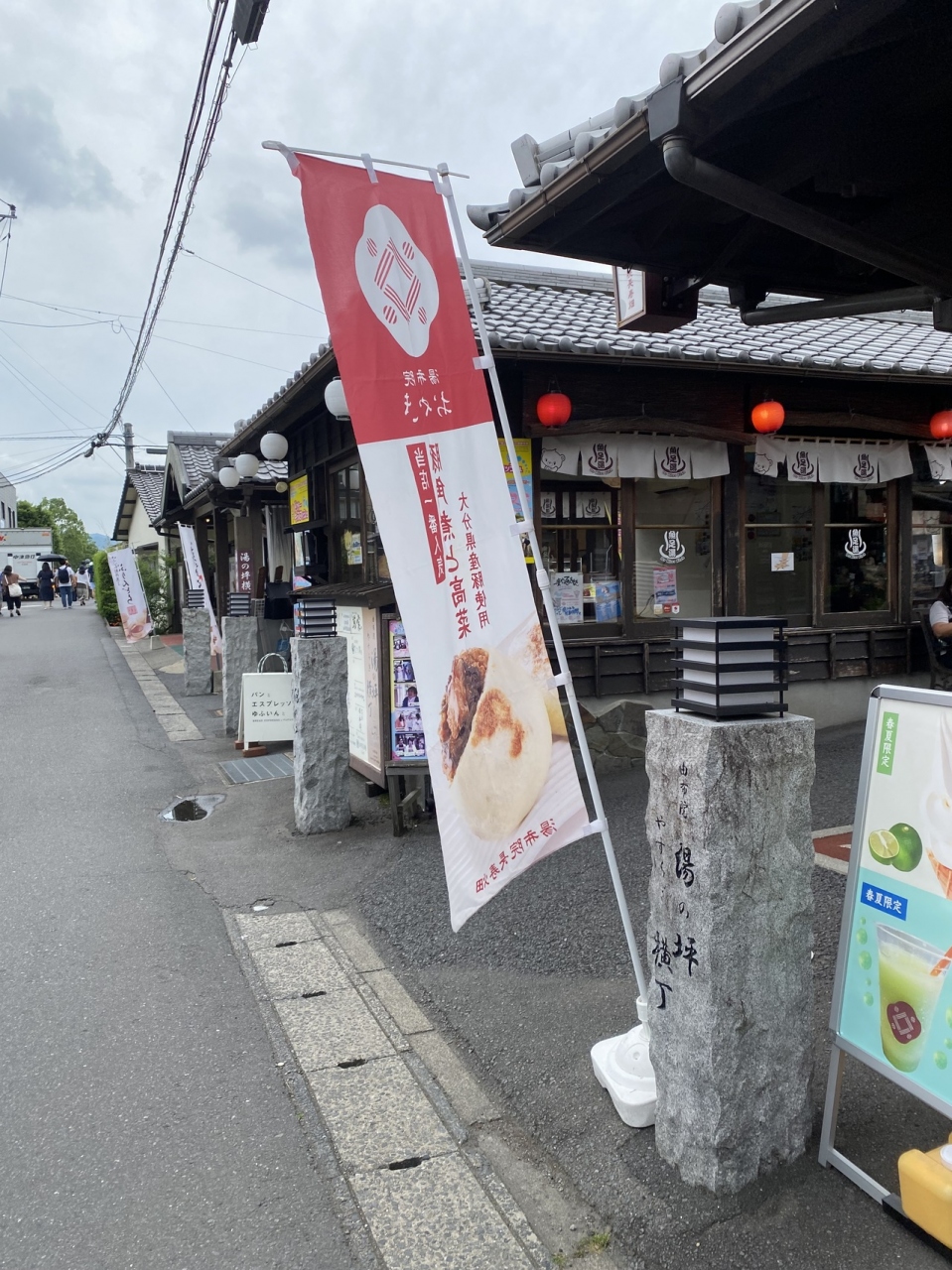 湯布院のメインストリート。 とにかく食べ歩きの店やいかにも観光客相手といった店ばかり。観光客の目にとまるようにと工夫した... 続きを読む看板やインスタ映えをねらった食べ物。宣伝をしたい気もわかりますが、気の利いた温泉地の商店街ははもっと上品ですよ。 人が多いし車も通るし。 閉じる