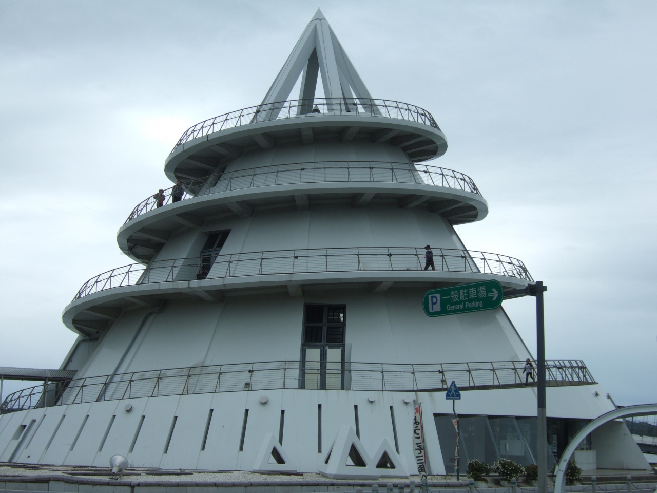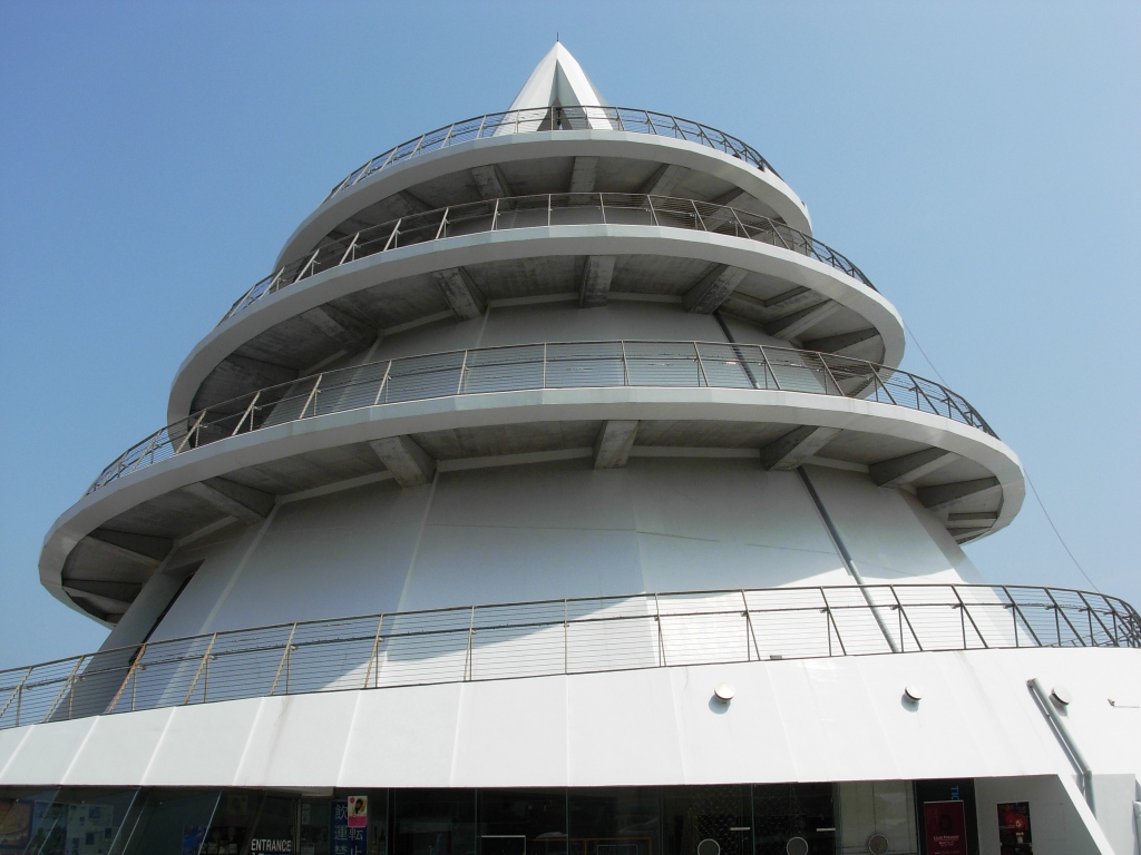 熊本県の天草諸島方面に渡るための入り口となる三角港東港そばに円すい形の、いわく言い難い建物がありました。三角港のフェリータ... 続きを読むーミナルですが、その形から「海のピラミッド」という名前が付いてました。周囲を回るスロープから自転車で降りてくる人もおり、展望台のようなものもありました。ドアから中を見ると土産物屋のような店もありましたが、鍵がかかっており、入ることができません。フェリーの時間に合わせてオープンするんでしょうかねえ。ところで、後で知ったのですが、訪れた2009年4月ごろ、この建物は土曜の夜、クラブになっていました。若者も少ないと思われる地域ですが、どういう客層が踊っていたのか興味あるところです。