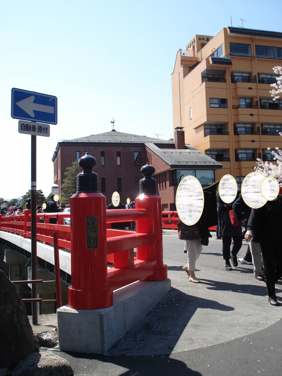 赤い橋と満開の桜……絶好の撮影ポイント。