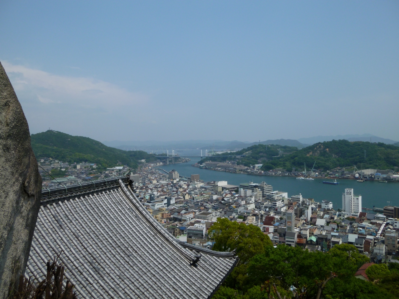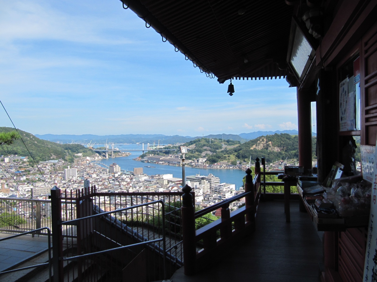 さて、写真は、境内から。風光明媚な尾道の市街から尾道港、瀬戸内海までを一望する絶好のロケーションにありますので、しまなみ街道のつり橋や海峡を行き来する船もきれいにくっきり見ることが出来ました。