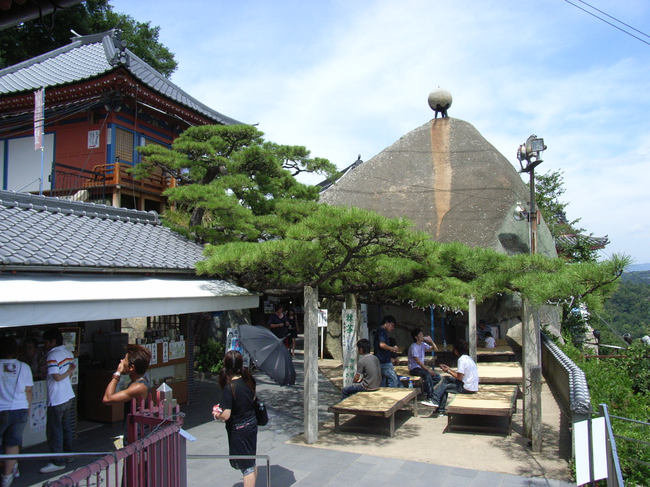 朱色を基調とした建物がならぶ千光寺.境内にある赤堂からは尾道市街,それに尾道水道と四国へと連なる因島などの島々を臨むことが...  続きを読むできて,とても美しい景色を写真に収めることができる.また,奇岩が多く周囲にある.  閉じる