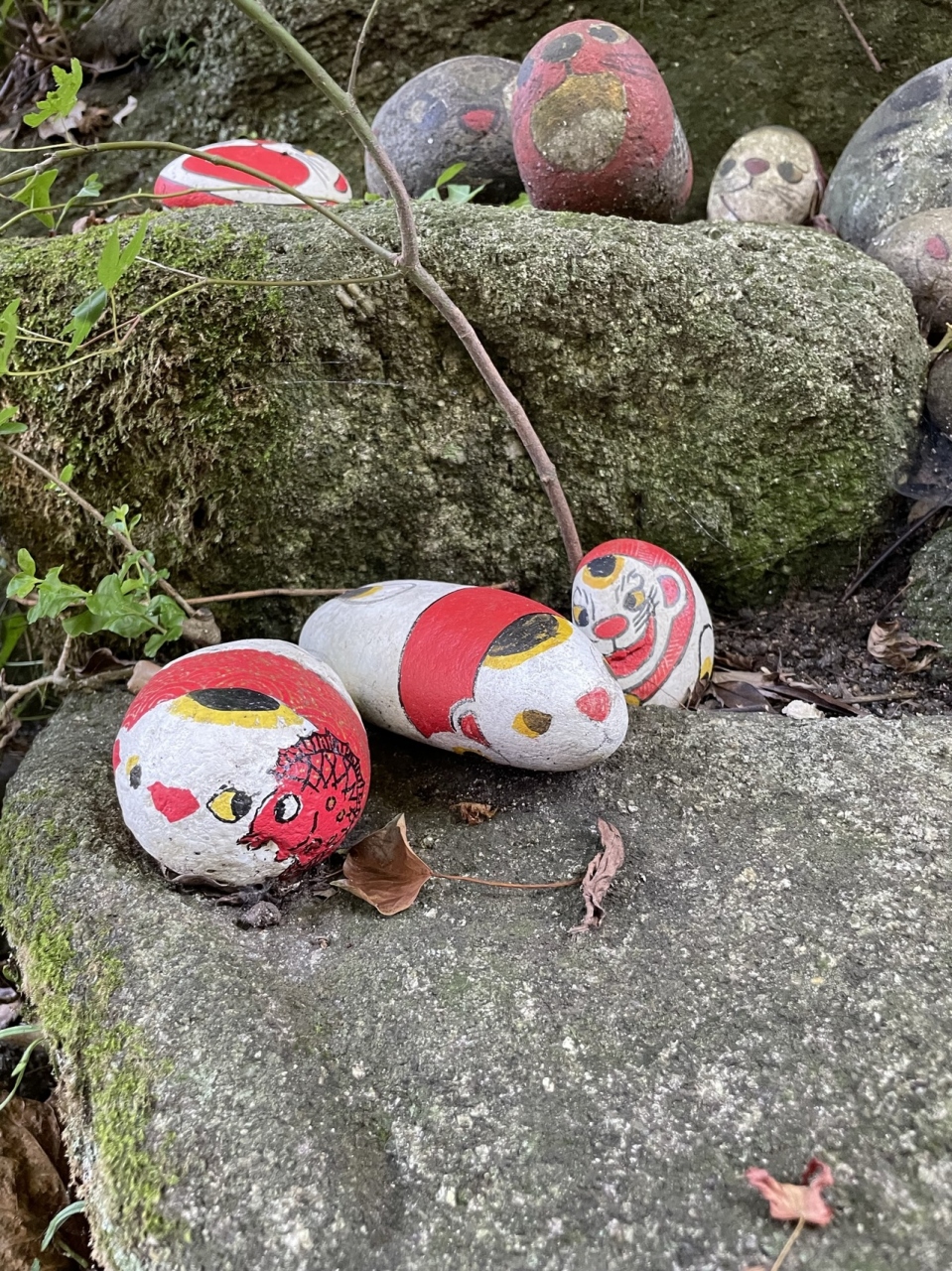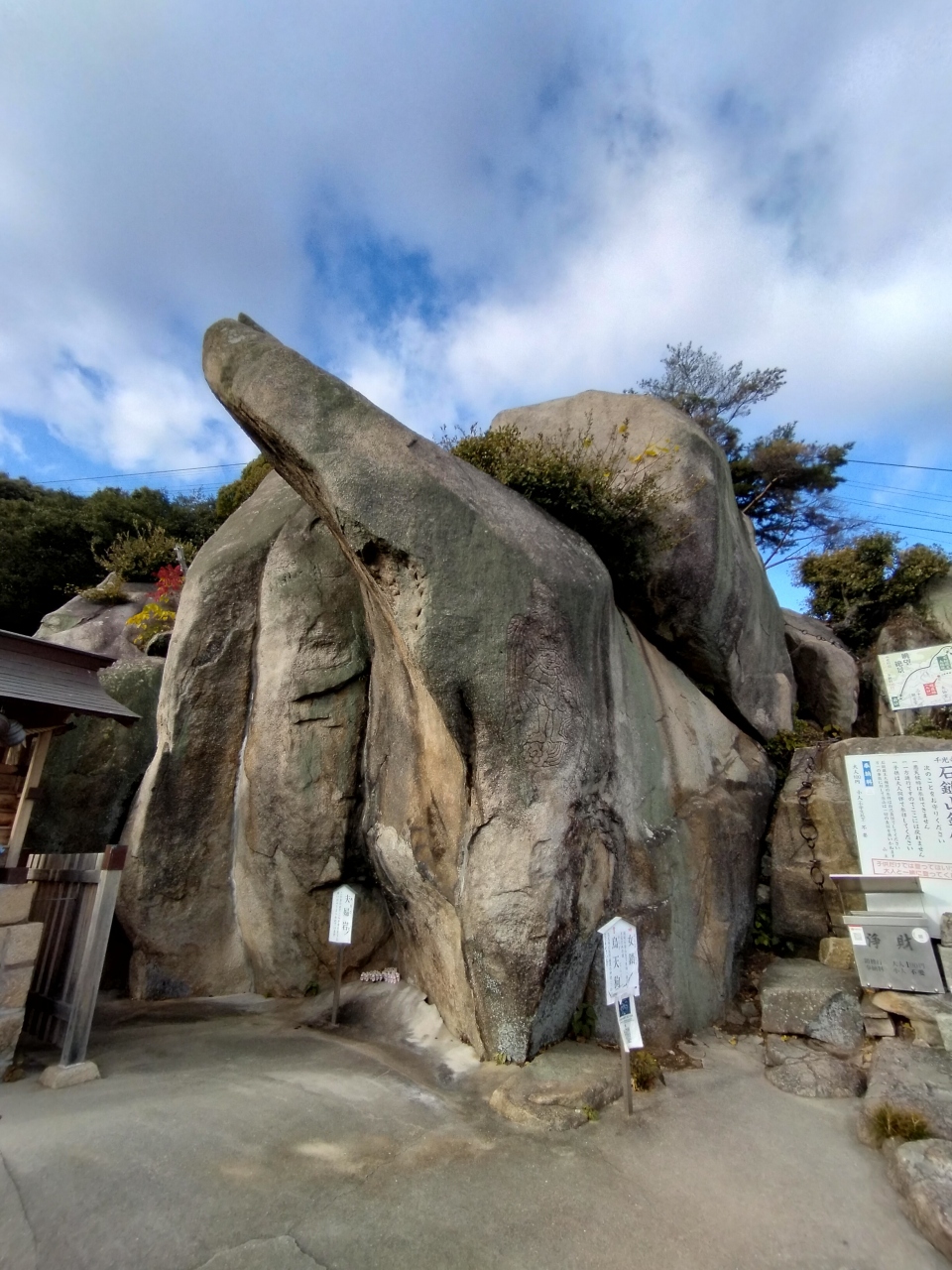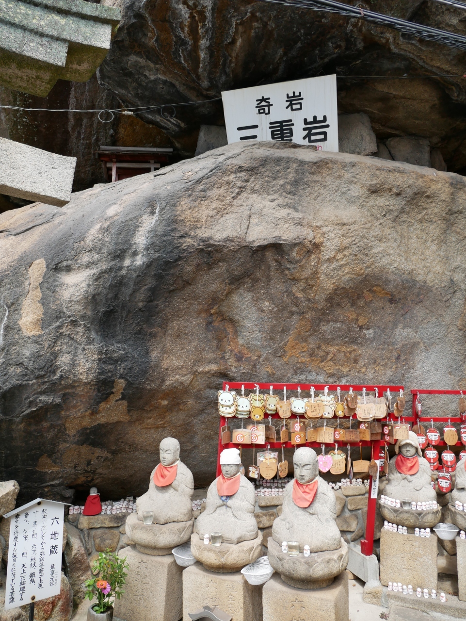 見所がありすぎて梵字岩を拝む事を忘れ...  続きを読むてしまいました。確か、鼓岩(つづみいわ)・別名「ポンポン岩」は映画「転校生」のロケ地です。岩の上を石で打つと「ポンポン」と鼓のような音がするとの事、柵もなくちょっと怖かったけれど置かれていたトンカチで岩のへこみを叩くと「ポンポン」と音がしました。  閉じる
