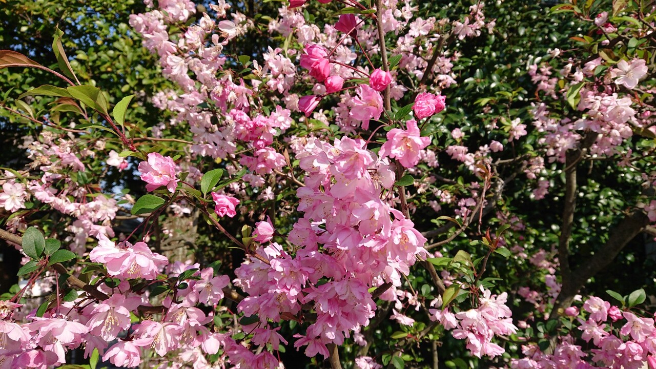 境内と入口の鳥居の前に立派な桜の木があります。また、春に淡紅色の花海棠(ハナカイドウ)もあります。