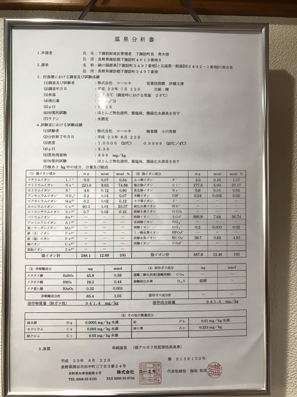 泉質はナトリウムカルシウム硫酸塩塩化物泉でPhは8.34。透明な湯だがややしょっぱいにおいを感じた。アルカリ性の湯で入浴時のつるつる感が感じられた。塩素臭はなく、かけ流しだと感じた。入浴時、内湯は熱めで44度以上あったと思われる。