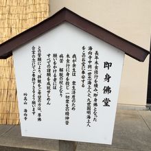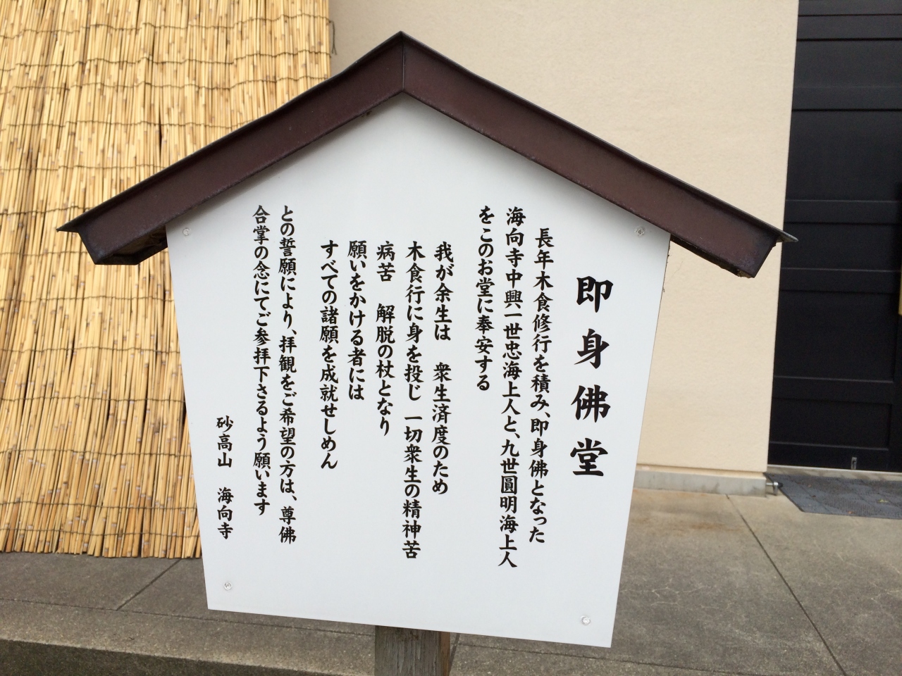 第八代住職、鉄門海上人も衆生済度の為、自ら即身仏となったと伝えられており、即仏堂には忠海上人(1755年入定)、円明海上人(1822年入定)の2体が安置されている。五穀断ち、十穀断ち、1000日修行を積んだもので鉄門海上人の遺品その他も展示されている。