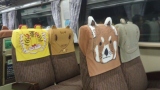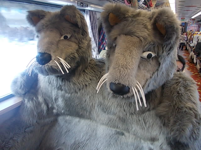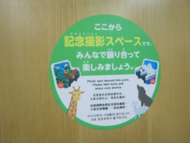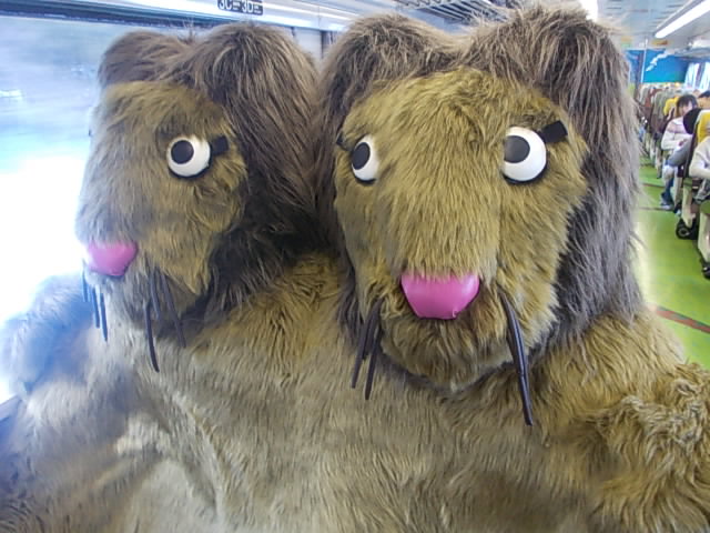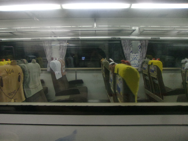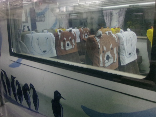 *早めのホーム到着で、電車の外側から、中の動物シートなど