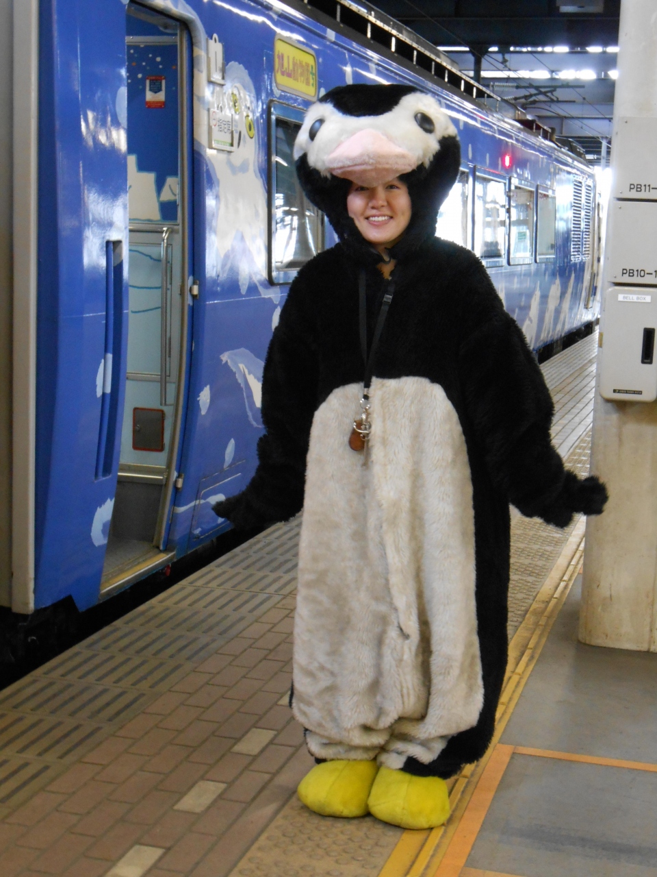 冬期の復路の旭山動物園号は旭川駅を16:04に発車しますが、雪まつり期間中、旭山動物園が「雪あかりの動物園」と称して19:30まで開館していることが分かりました。子供が、もう少し大きければ、せっかくなので夜の動物園も楽しみたいので、次回は、よく動物園のHPをチェックして、動物園号に乗るか、他の特急に乗るか考えてみようと思いました。(ただし問題は、動物園号の座席の予約が始まる時期に、動物園のイベントが発表されていない場合があることかなー。。。)