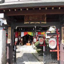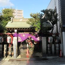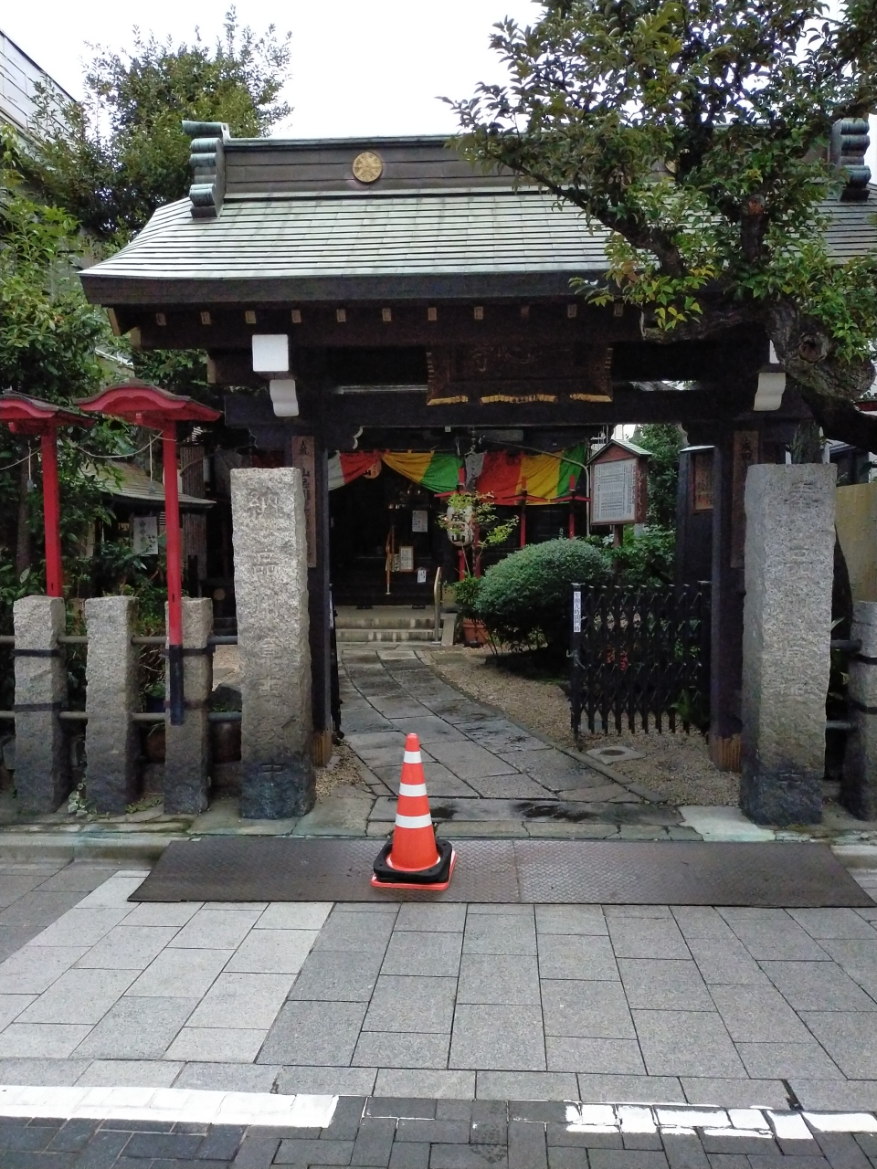 狭い敷地に、青銅色の屋根のお堂がありました。