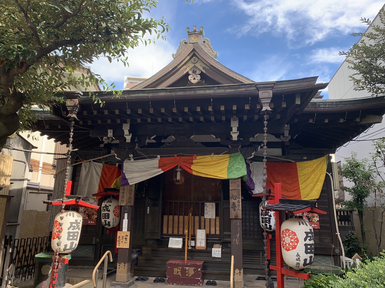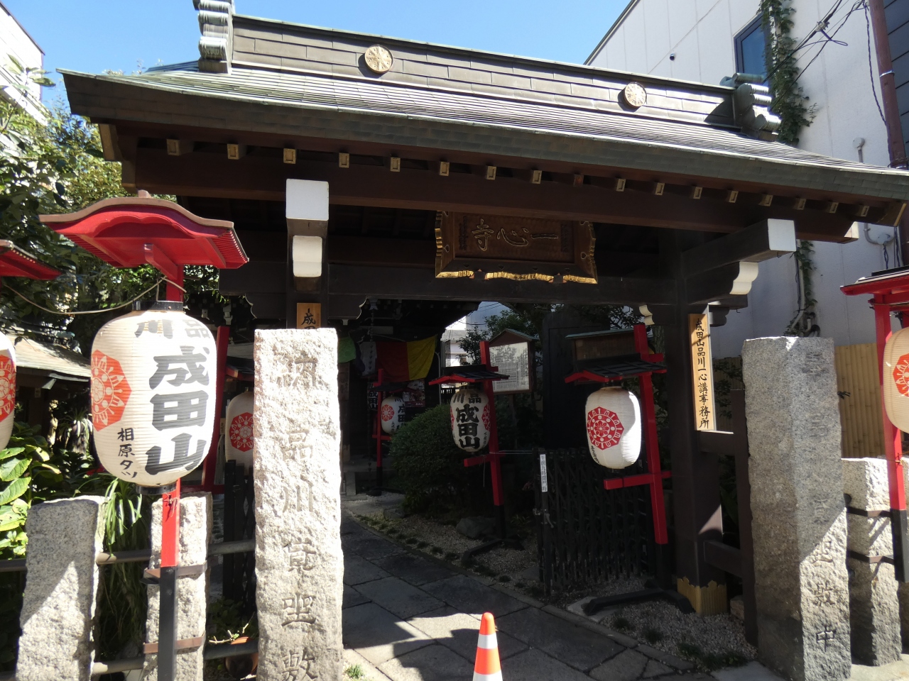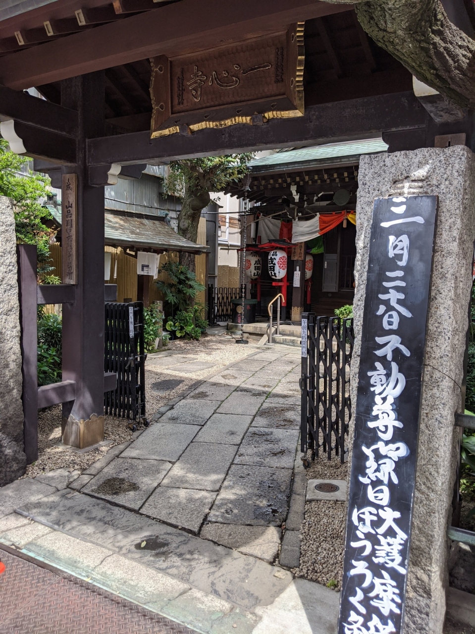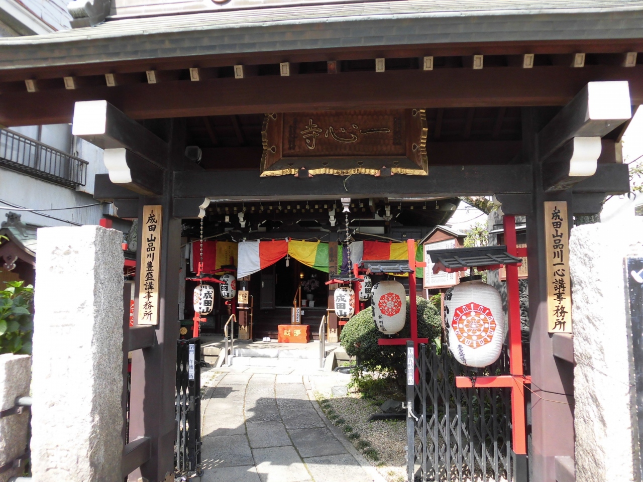 品川成田山の提灯の下がる小さなお寺は井伊直弼の開山の一心寺