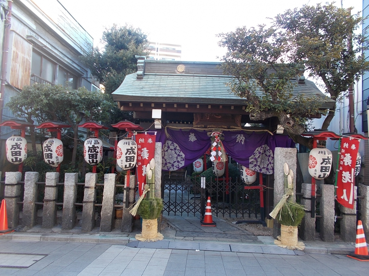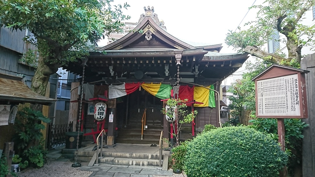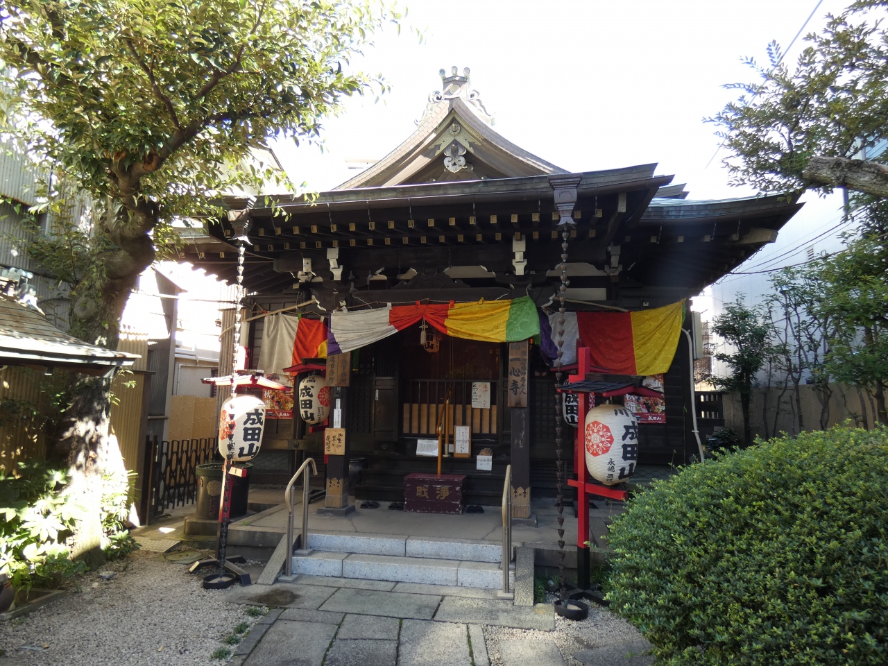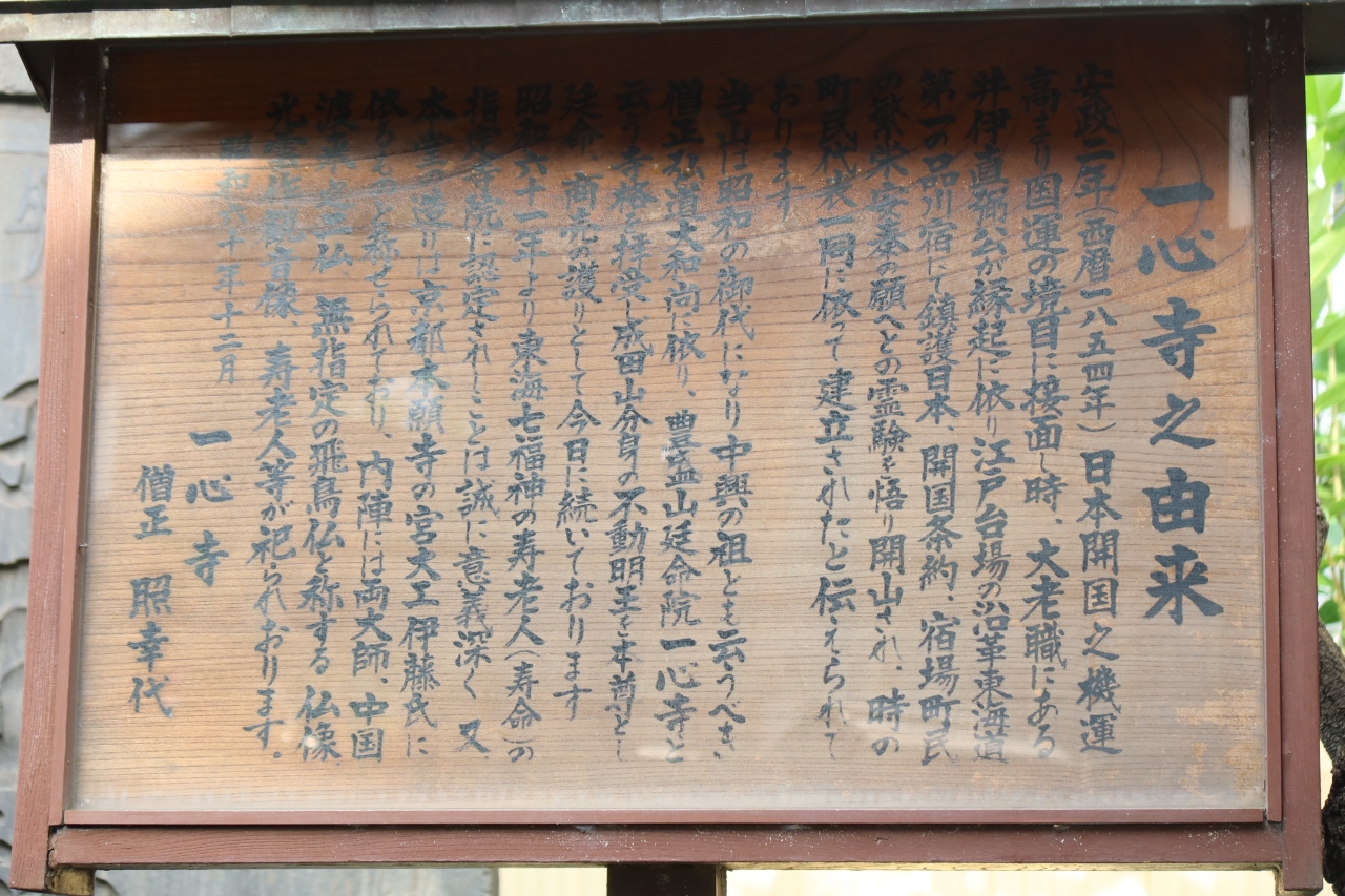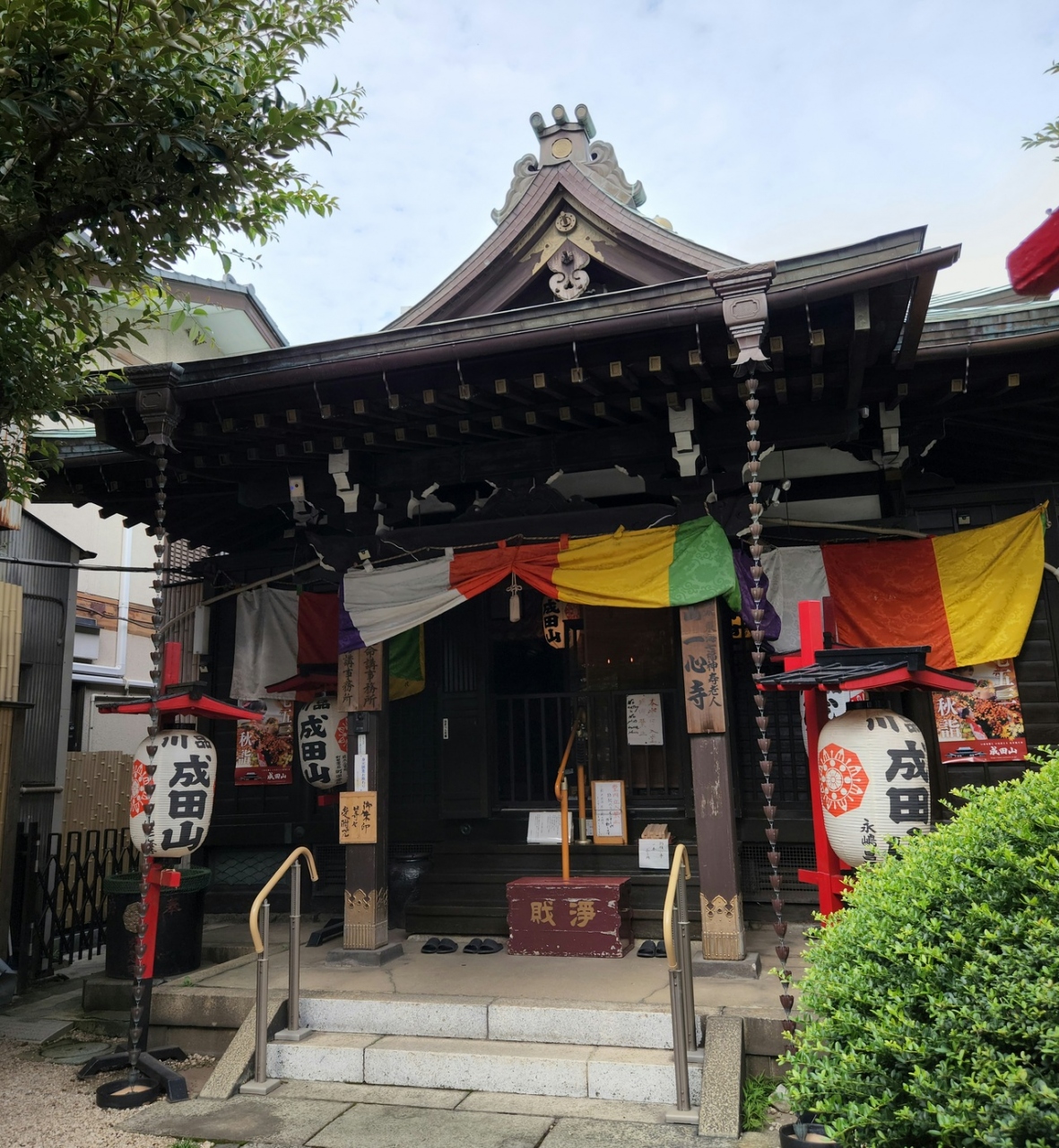 品川成田山の提灯の下がる小さなお寺は井伊直弼の開山の一心寺