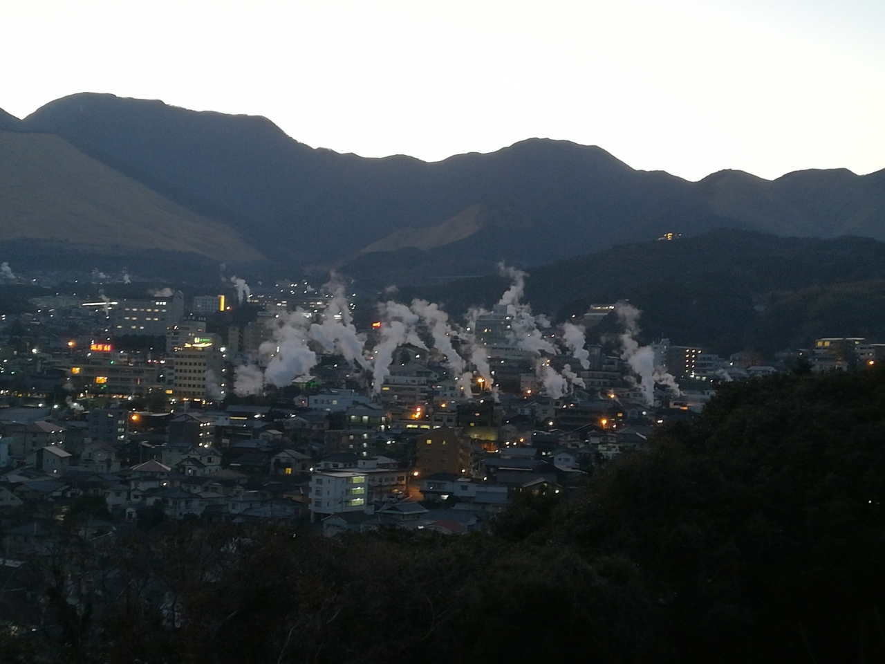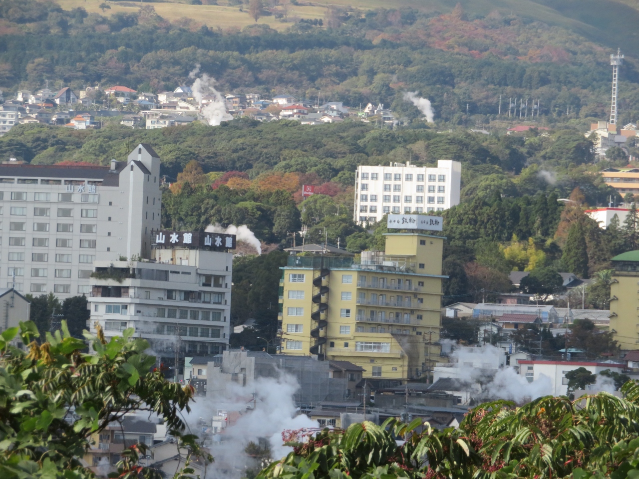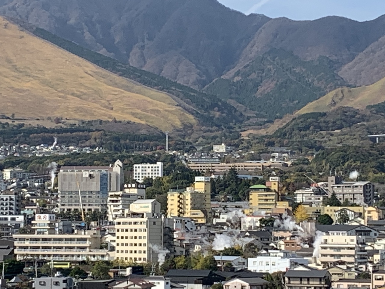 立ち上る無数の湯煙が見られます。
