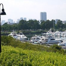 公園の北側の運河... 続きを読むに沢山のボートやヨットが係留されています。