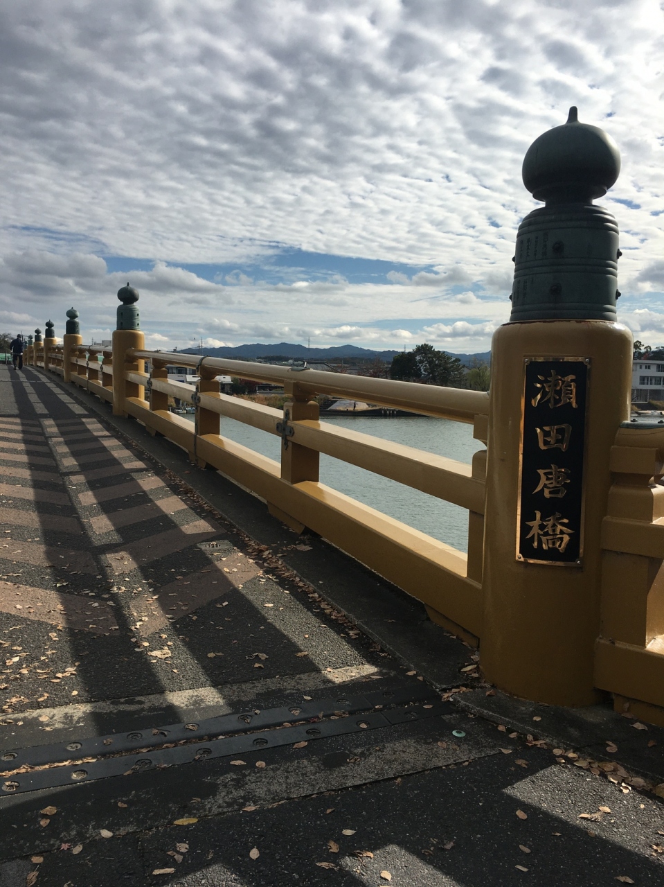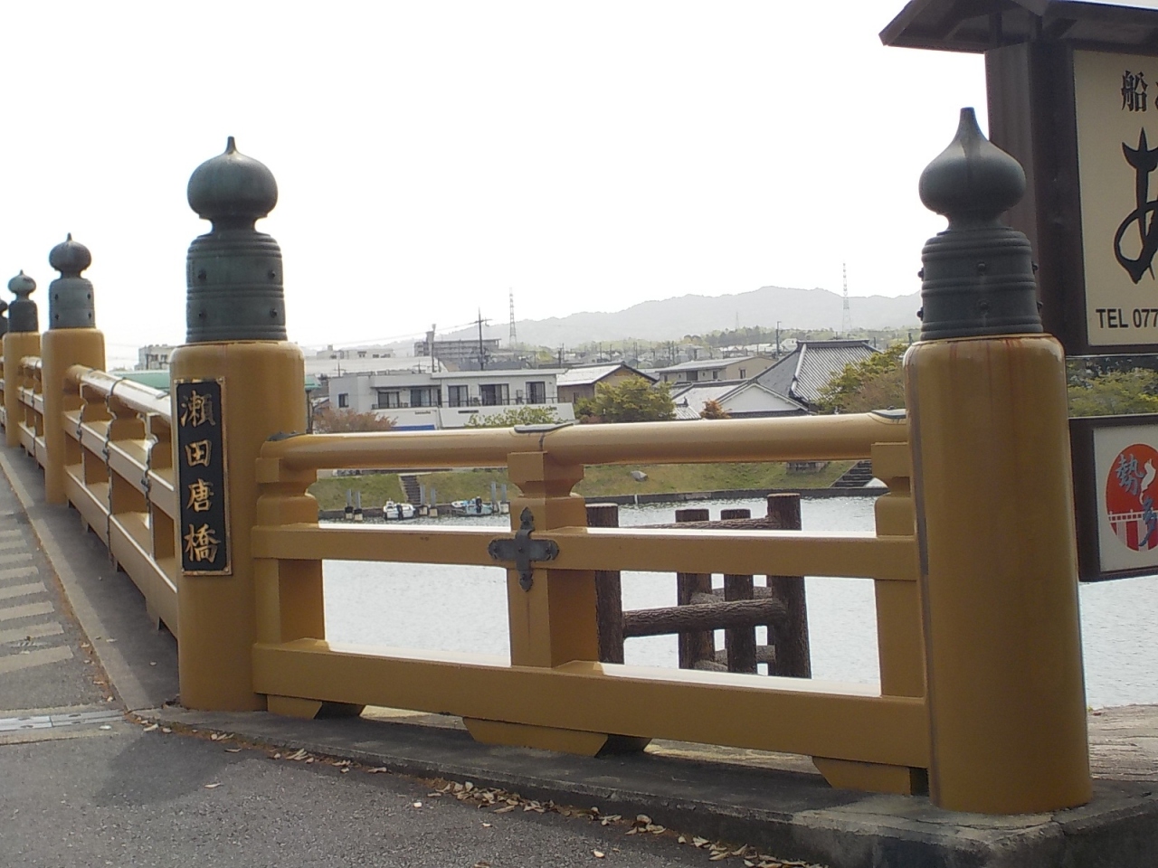 日本三名橋の一つでもある瀬田の唐橋は、近江八景「瀬田の夕照」で名高い橋です。「唐橋を制するものは天下を制す」といわれるほど... 続きを読む、都へ通じる軍事、交通の要衝でした。結果、何度もこの橋をめぐって戦いが起こりました。織田信長が現在の橋のような形に整備しました。現在の橋は昭和54年に架け替えられたものです。黄土色に彩色された橋には擬宝珠が付けられ昔の姿を見せてくれています。唐橋前駅から橋を渡るとまず小橋があり、ホテルがある小島があります。その次に大橋があります。小島の小高い所にはにはムカデ退治をした俵藤太の像があります。またサイクリングで琵琶湖一周をする「ビワイチ」のスタート地点が橋の北側にあります。 閉じる