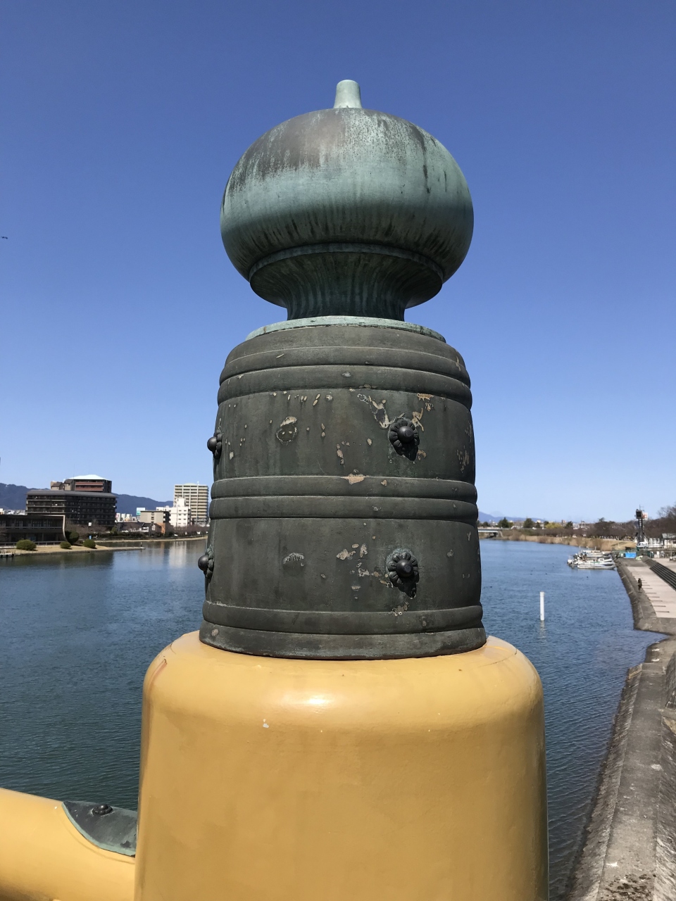 瀬田の唐橋は、JR石山駅から南東の方向へ500mくらい離れた場所にあり、瀬田川に架っている橋です。現在の橋は昭和54年に架... 続きを読むけ替えられたものですが、橋の擬宝珠は歴代のものが受け継がれており、今でもとても趣のある橋です。「文政」「明治」などの銘が入った擬宝珠も現存していました。「急がば回れ」の由来ともなった橋として知られ、滋賀観光では見どころの観光スポットと言えます。この日は天気もよく、気持ちよさそうにボートを漕いでいる人が多かったです。唐橋の畔には公園もあり、ここに「ビワイチ出発の地」というモニュメントがあり、初めて知りました。公園で日向ぼっこをされている老人の姿が微笑ましかったです。近くに来たら是非立ち寄って頂きたい有名な景勝地です。 閉じる