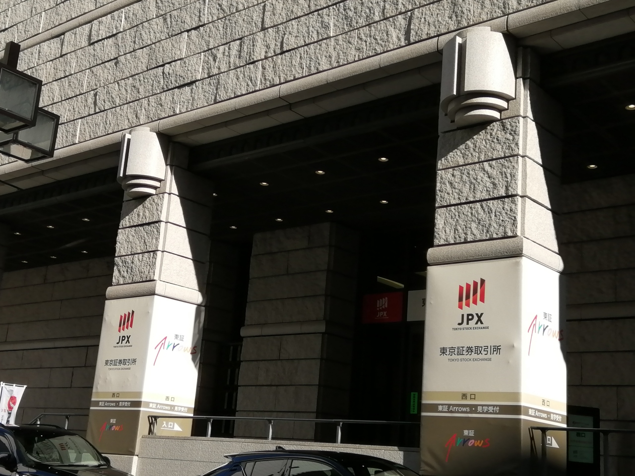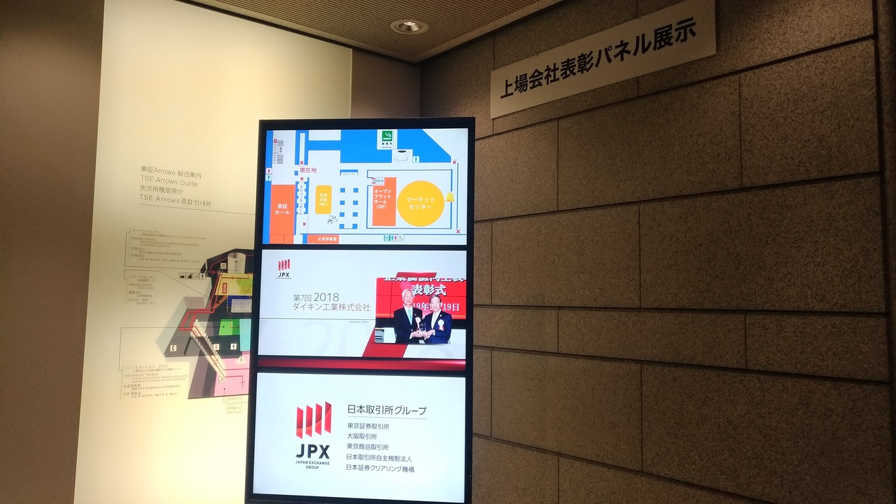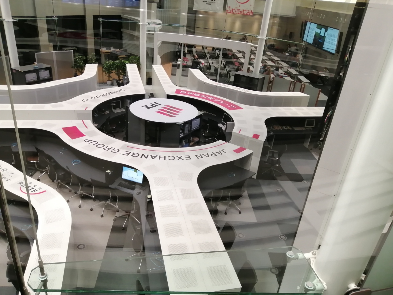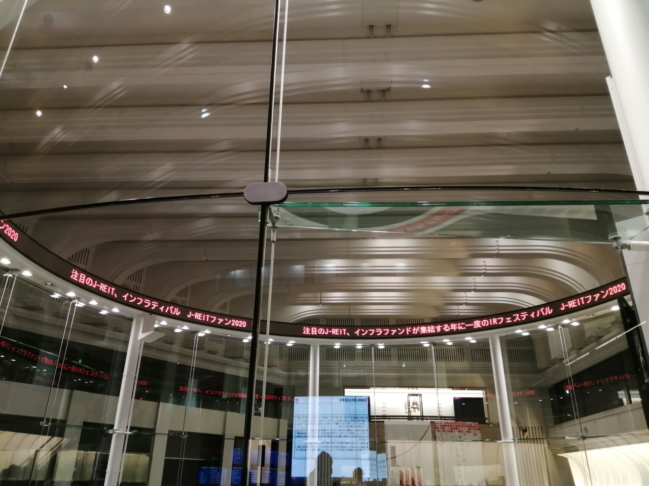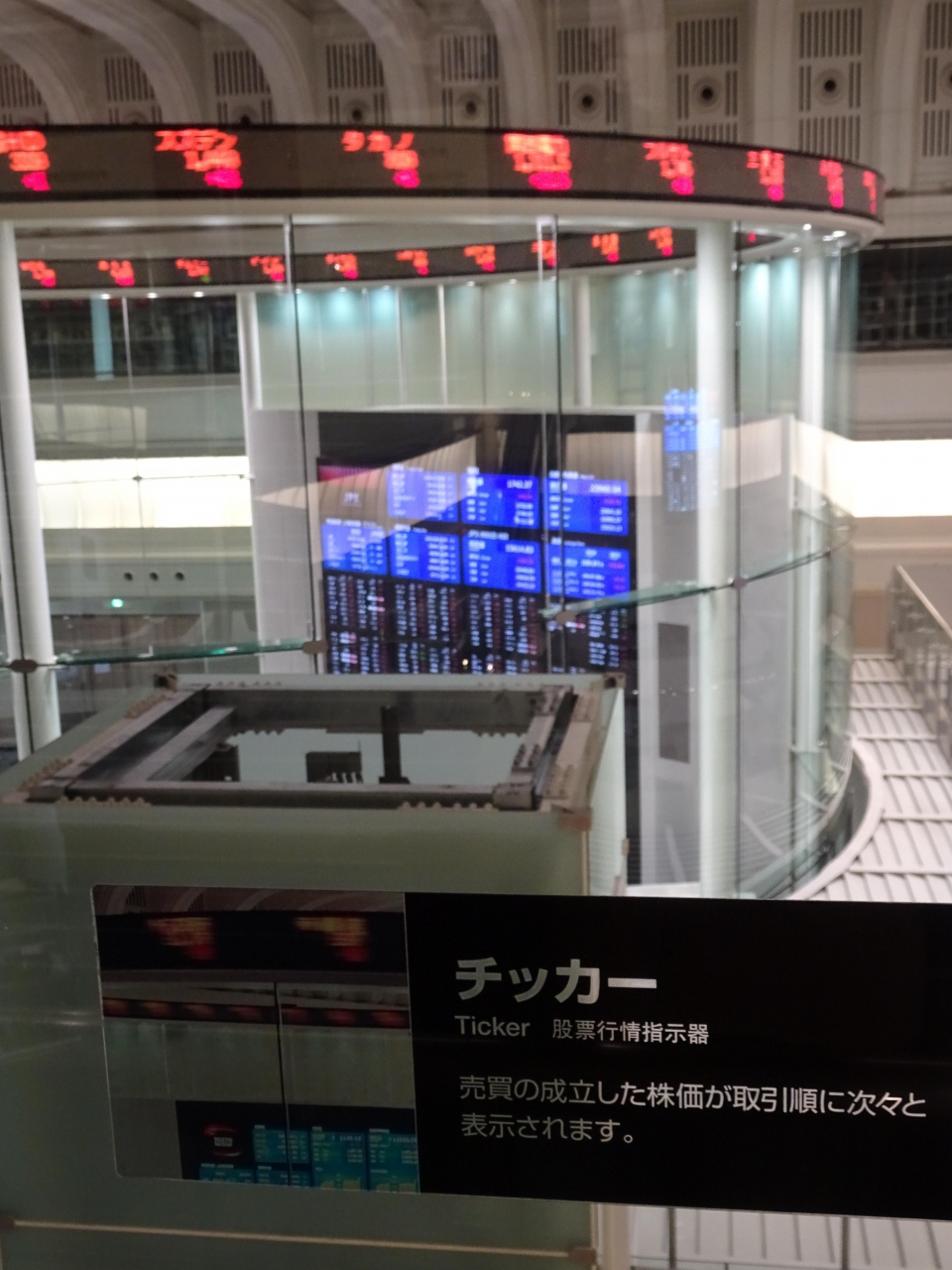 ガラス越しにTVでよく見る、株価の電光掲示板がぐるぐる回っているのが目に飛び込んできます。