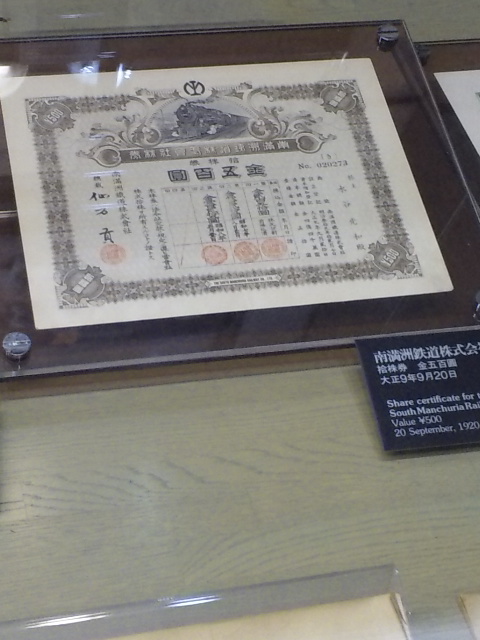 日銀や満州鉄道の株券など面白いものもちらほら。