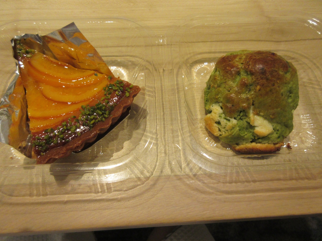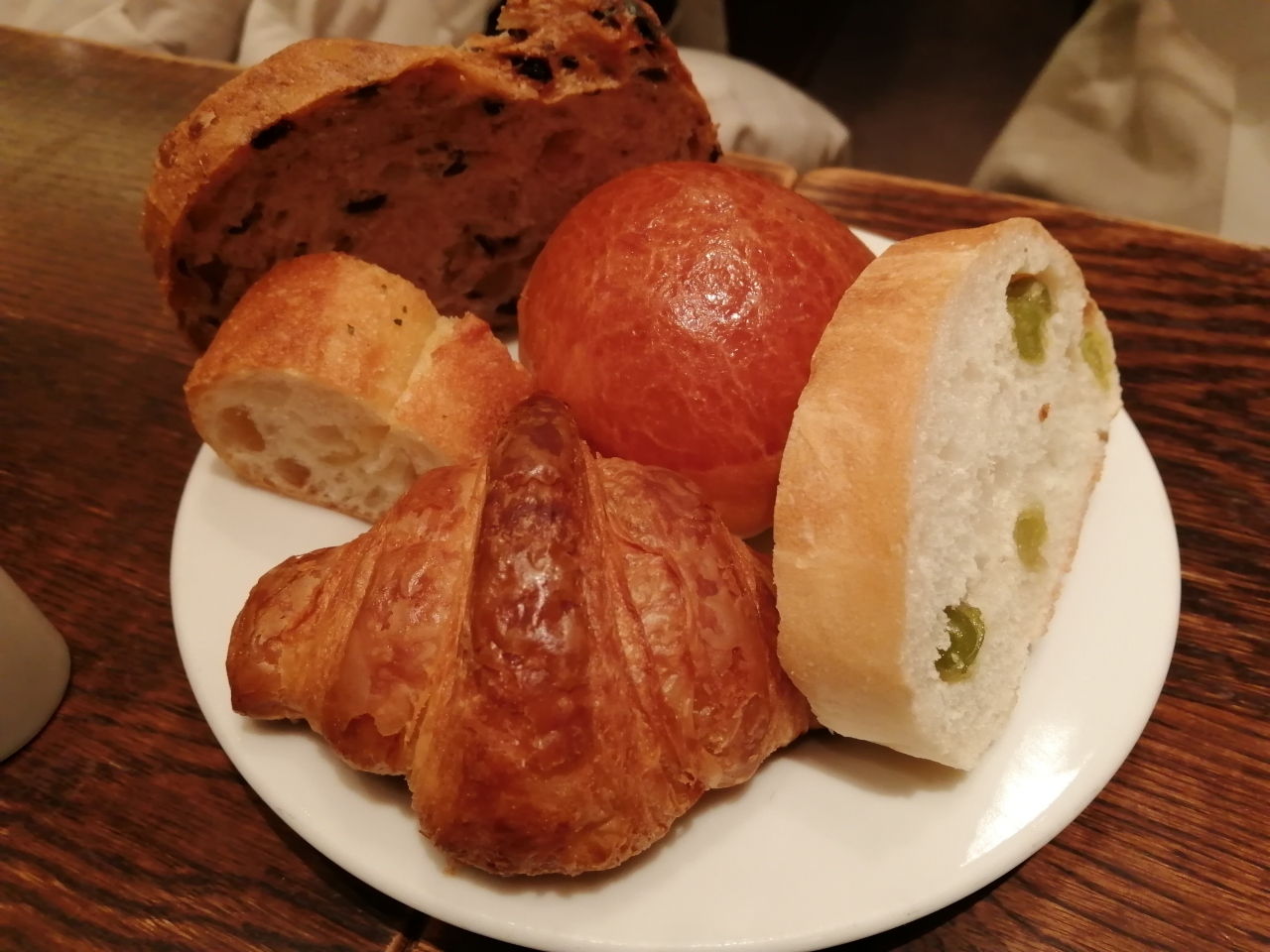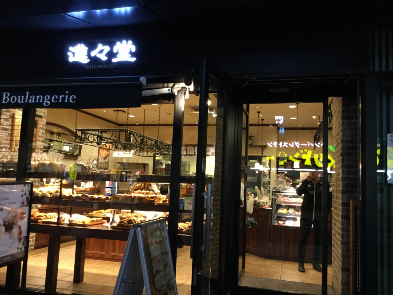 夕食を食べた後、バス停へ行く途中に進々堂があったので朝食用に購入しました。クルミが生地に入っているそれほど甘くないあんのあ... 続きを読むんぱん、ホワイトチョコが生地にまぶしてある抹茶ホワイトチョコスコーン、温めるともっと美味しくなりそうなクロワッサン、漬け込んだオレンジがみずみずしかったオレンジパイを買いました。遅い時間だったので品数が少なかったことと、自宅で温めて食べるパンだったので普通に感じました。京都市内で見かける店で京都の老舗パン屋で、素朴な味わいが特徴です。イートインスペースはレストランのようで後で調べるとモーニングセットはホテルの1階らしく卵料理やソーセージが付いた洋食を食べられます。次回はイートインで温かいパンを食べたくなりました。 閉じる