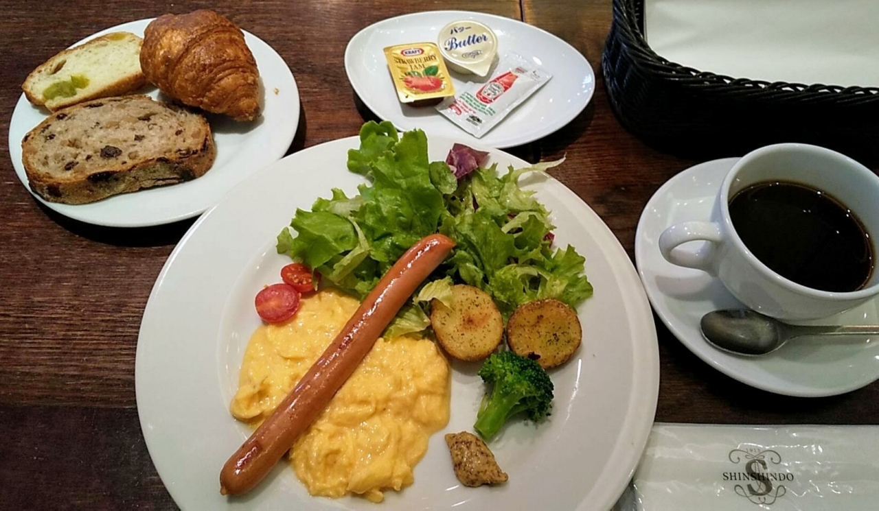 宿泊していた「ザ・ロイヤルパークホテル京都三条」の建物1階にあったベーカリーレストランの「進々堂」さんです。京都というと、... 続きを読むやはり和食のイメージで、パンを食べようという気分にはなりませんでしたが、パンでは定評のある土地柄なんですってね。そうしたパン屋さんの中でも評判の良いお店ということで利用してみました。注文したのは“雑穀生活”のせのせプレートで880円、それに320円追加してアイスコーヒーのセットにしました。さて味は…食材のレベルが高く、とてもおいしいものでした。便利な場所、綺麗な店内もあって、とりわけ女性の支持が高そうです。接客も卒なく、思った以上のレベルの高さで、さっそくポイントカードも作ってしまいました。評価の高さに納得です。 閉じる