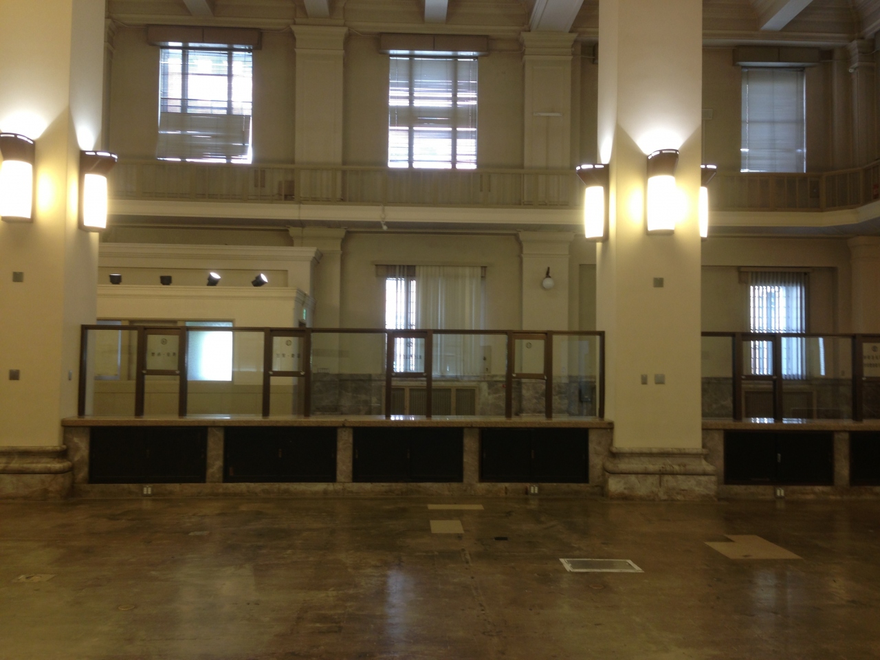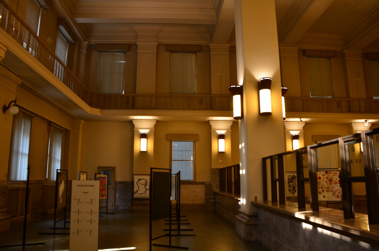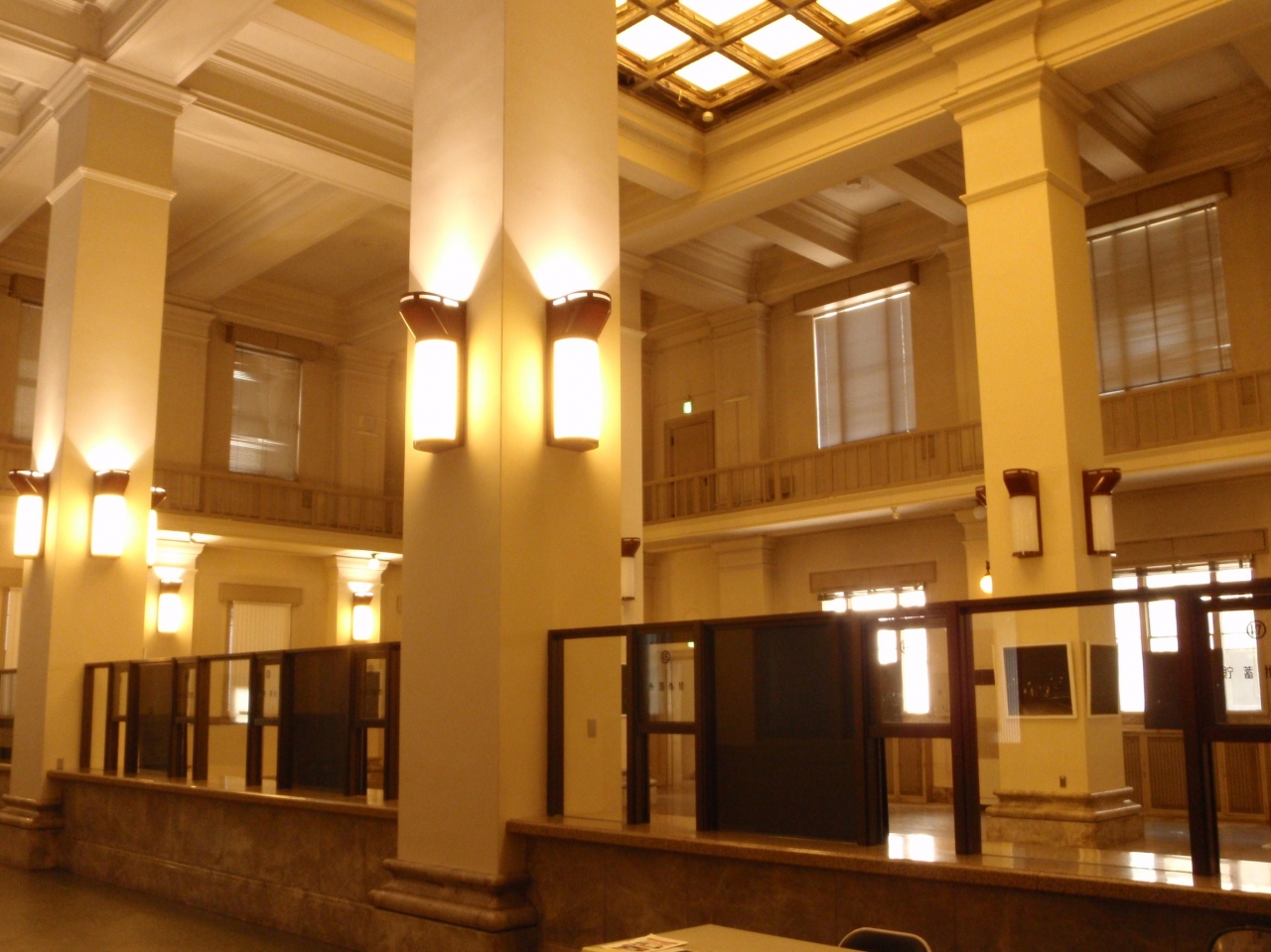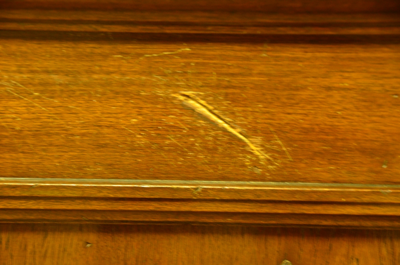 旧支店長室に残る被爆の際のものがあたった傷痕
