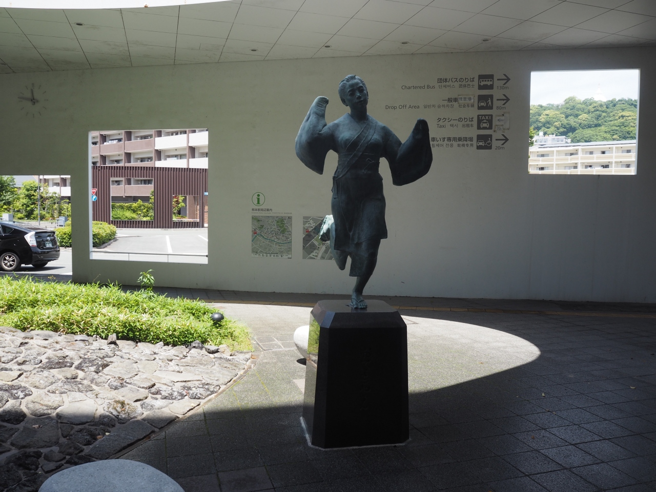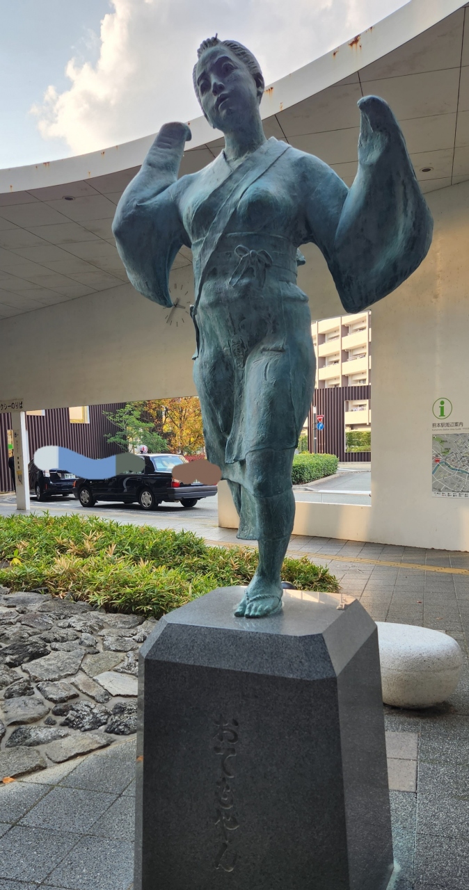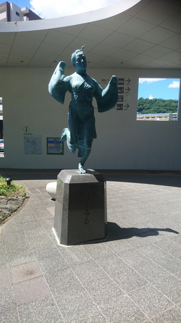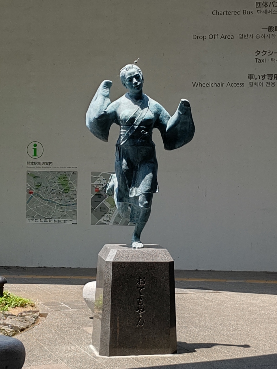 JR熊本駅新幹線口の玄関前に建つおてもやん像