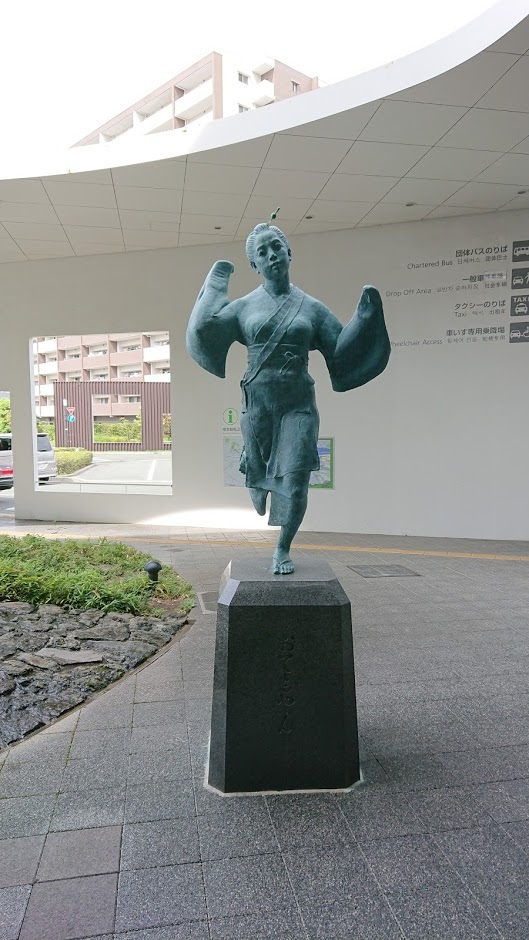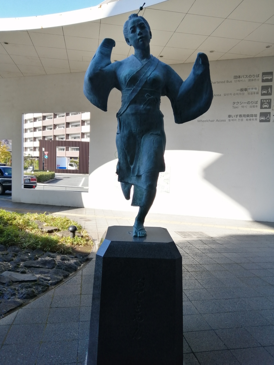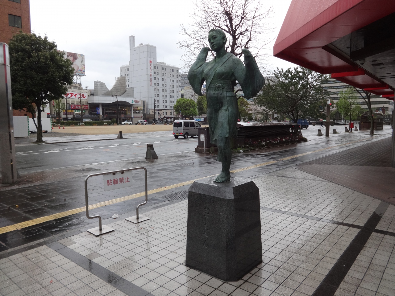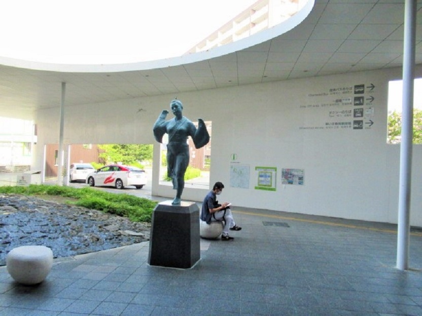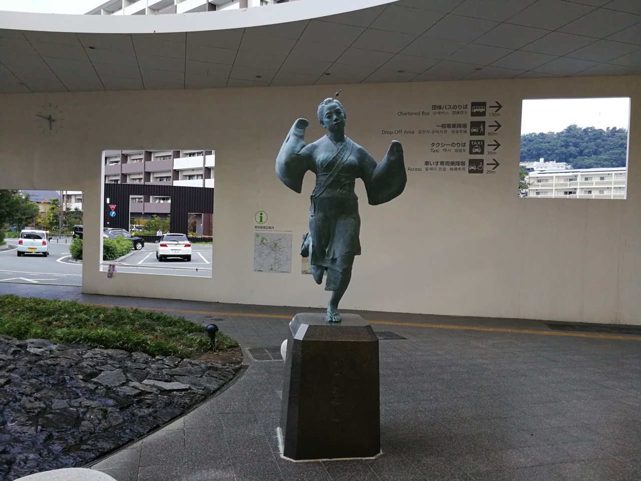JR熊本駅新幹線口の玄関前に建つおてもやん像